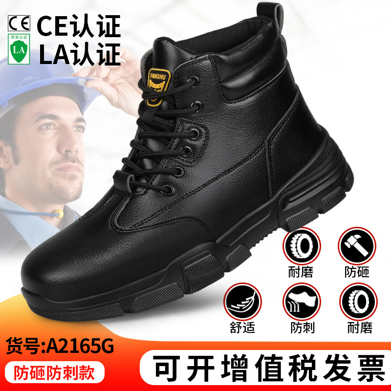 • F055BK - 가볍고 신고 벗기 쉬운 하이탑 노동 보호 신발; 49