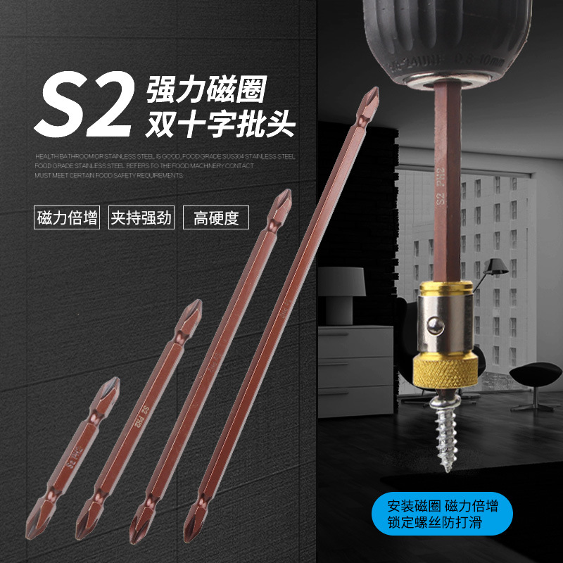S2 더블 헤드 크로스 일자 드라이버 전동 드릴 헤드 강한 자풍 배치 연장기 드라이버 PH2