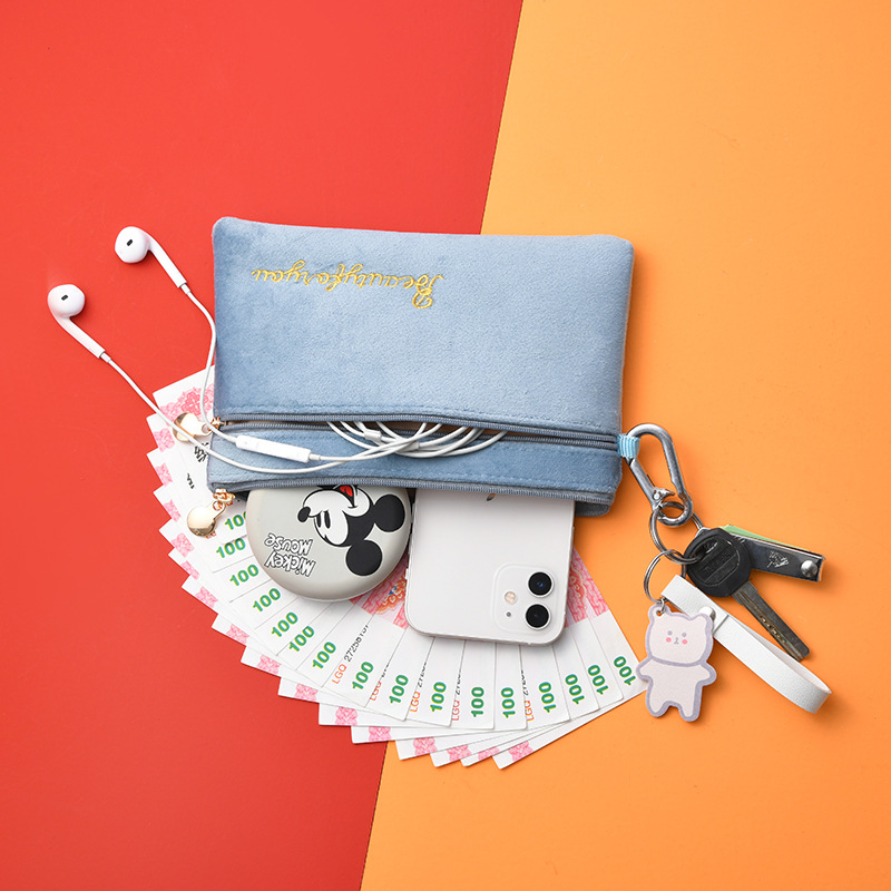 双拉链手机包袋ins绒布收纳袋便携式女士零钱包钥匙卡袋迷你小包 查看>