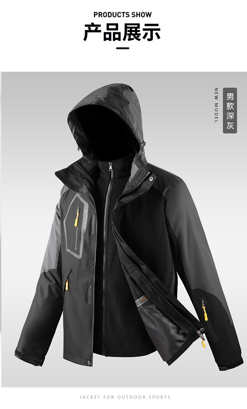 가을 겨울 3-in-1 스포츠 자켓 남성용 아웃도어 사이클링 투피스 세트 학생 단체 관광지 작업복 방수스토어 가기