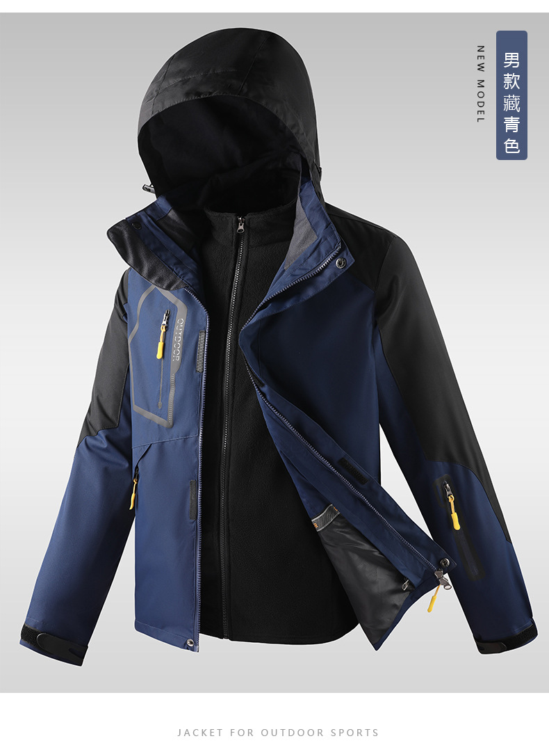 가을 겨울 3-in-1 스포츠 자켓 남성용 아웃도어 사이클링 투피스 세트 학생 단체 관광지 작업복 방수