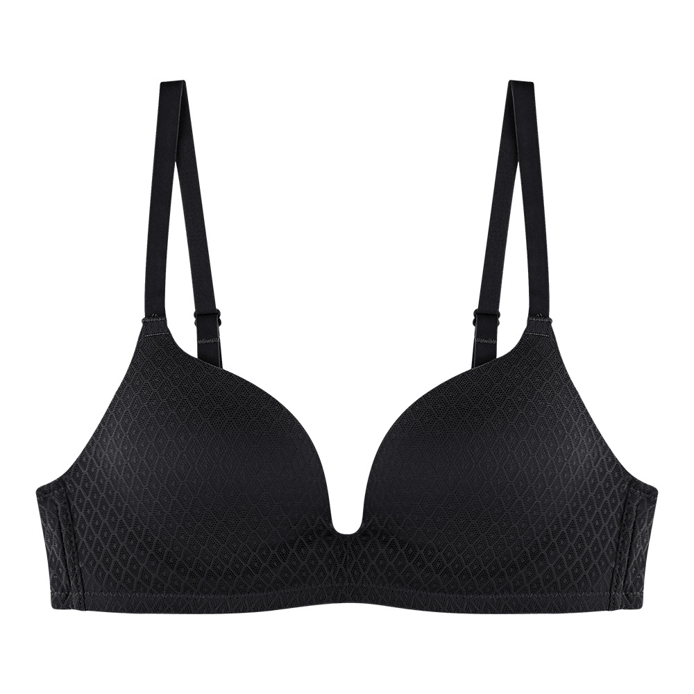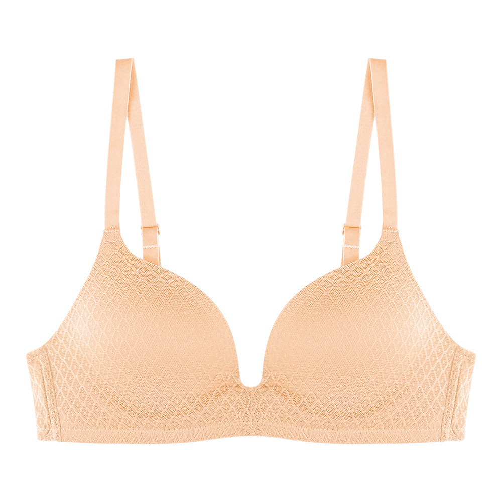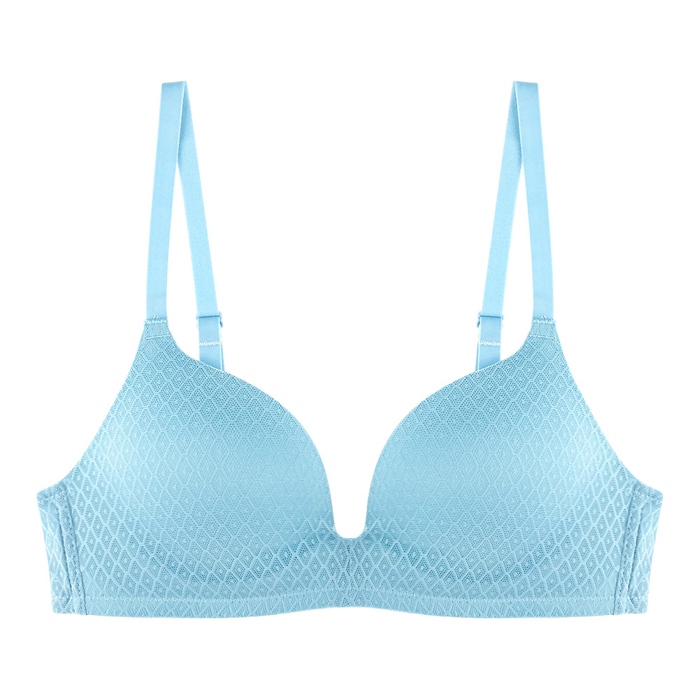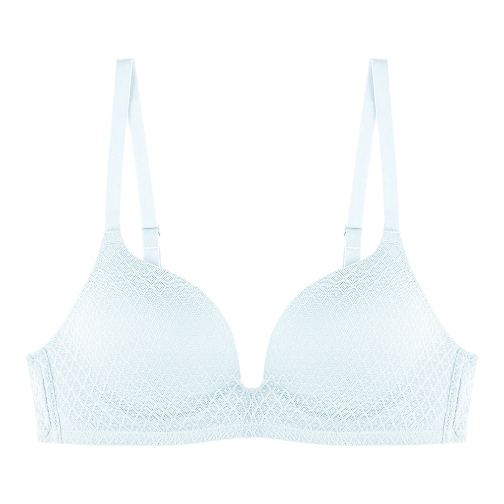 봄과 여름 새로운 심플 체크 무늬 레이스 비 테 브라 작은 가슴 플랫 가슴 편안한 속옷 소녀 통기성 전자 상거래스토어 가기