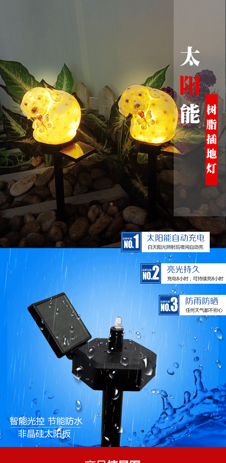 국경 새로운 태양 야외 잔디 램프 수지 바닥 만화 동물 장식 정원 안뜰 풍경 램프스토어 가기