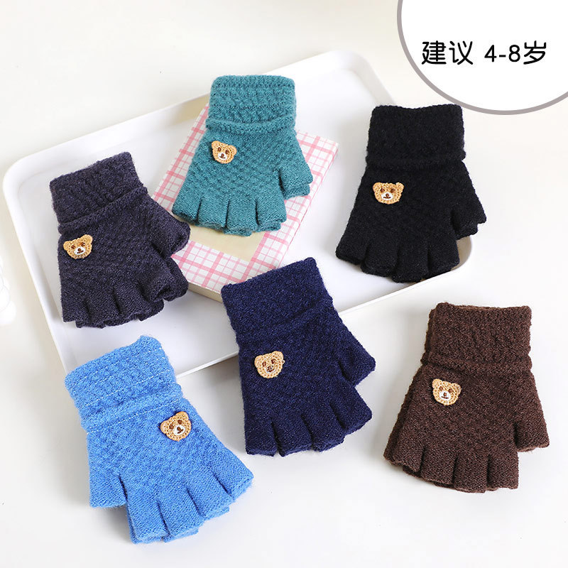 남학생과 여학생을 위한 어린이 니트 모직 장갑, 겨울 따뜻한 핑거리스 쓰기 반손가락 장갑
