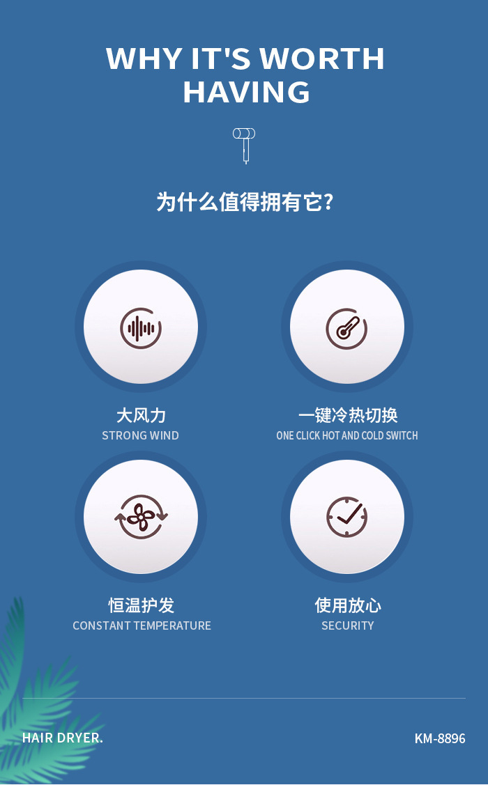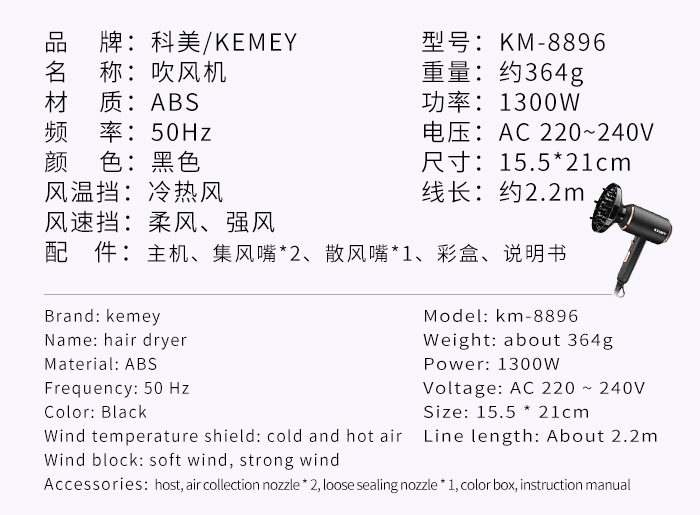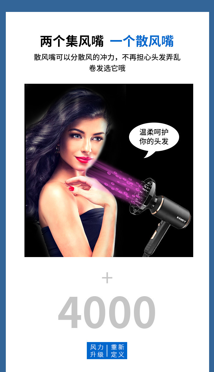 국경 간 뜨거운 판매 Kemei 헤어 드라이어 KM-8896 고출력 헤어 드라이어 해머 헤어 드라이어 큰 바람 4000W스토어 가기