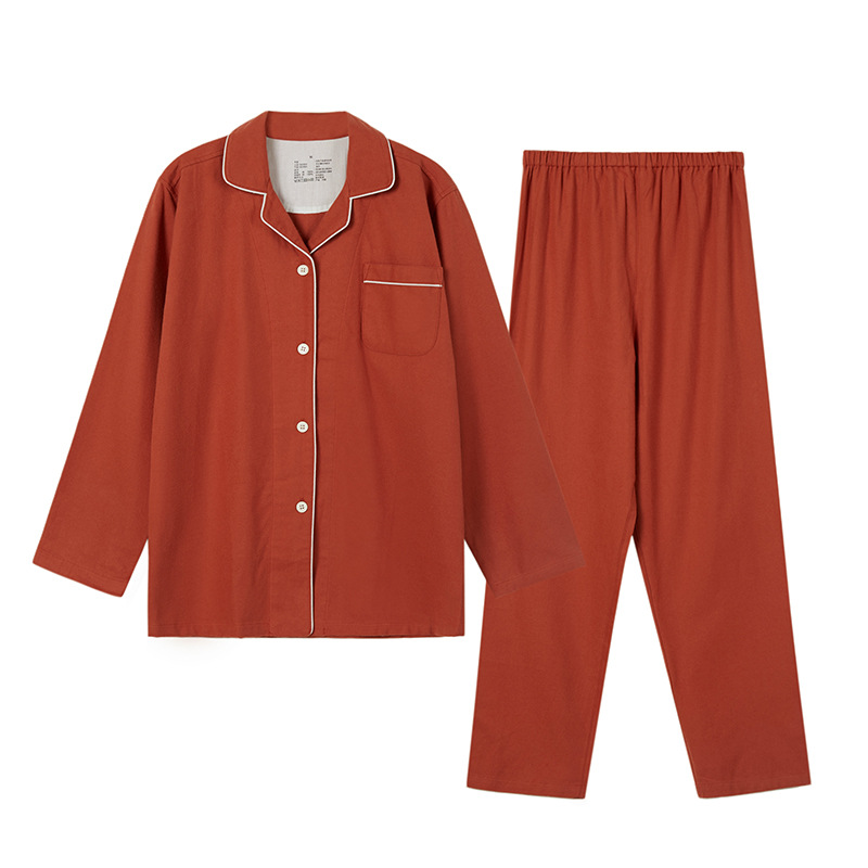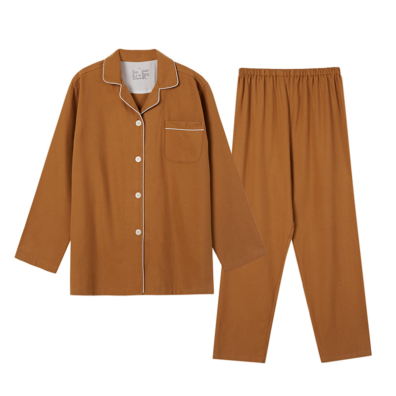 2025新款秋冬素色加厚睡衣女现货简约四层纱布男女情侣家居服套装