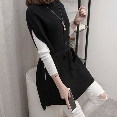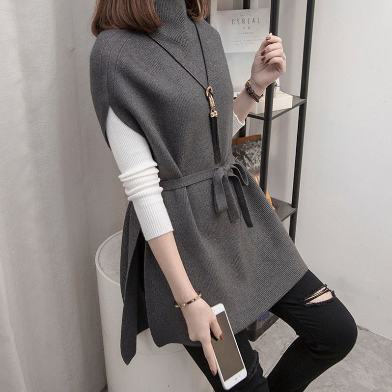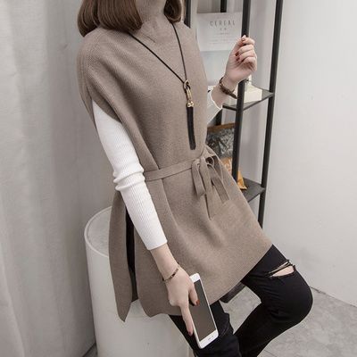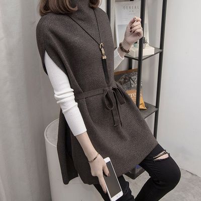 하프 터틀넥 중간 길이 스웨터 양복 조끼 여성 풀오버 2024 봄, 가을 새로운 스타일 느슨한 게으른 스타일 서양식 니트 조끼스토어 가기