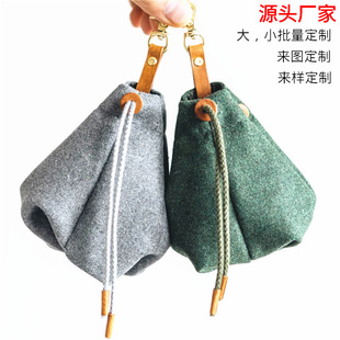 宠物零食袋便携户外狗粮收纳袋钥匙扣毛毡布束口袋厂家定制
