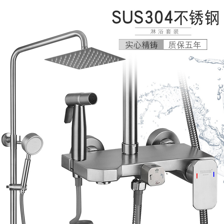 공장 도매 304 스테인레스 스틸 4 기어 샤워 헤드 세트 차가운 열대 스프레이 건 리프팅 탑 스프레이 샤워 헤드