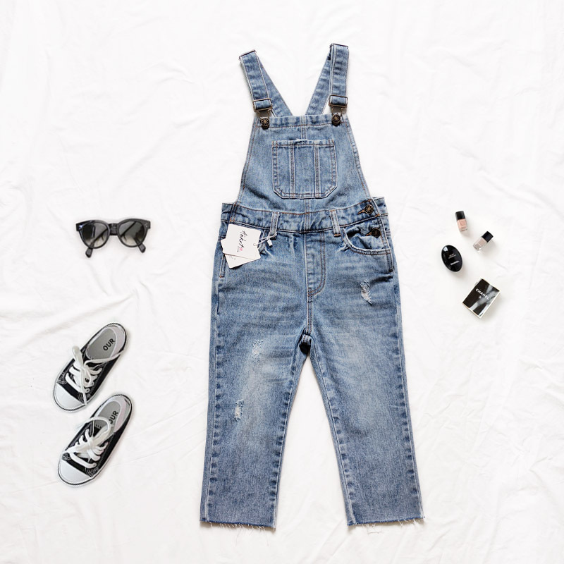 ANKRT 데님 스트랩 바지 여아 한국식 부모-자식 의류 아동 패션 서양 스타일 스트레이트 툴링 캐주얼 바지스토어 가기