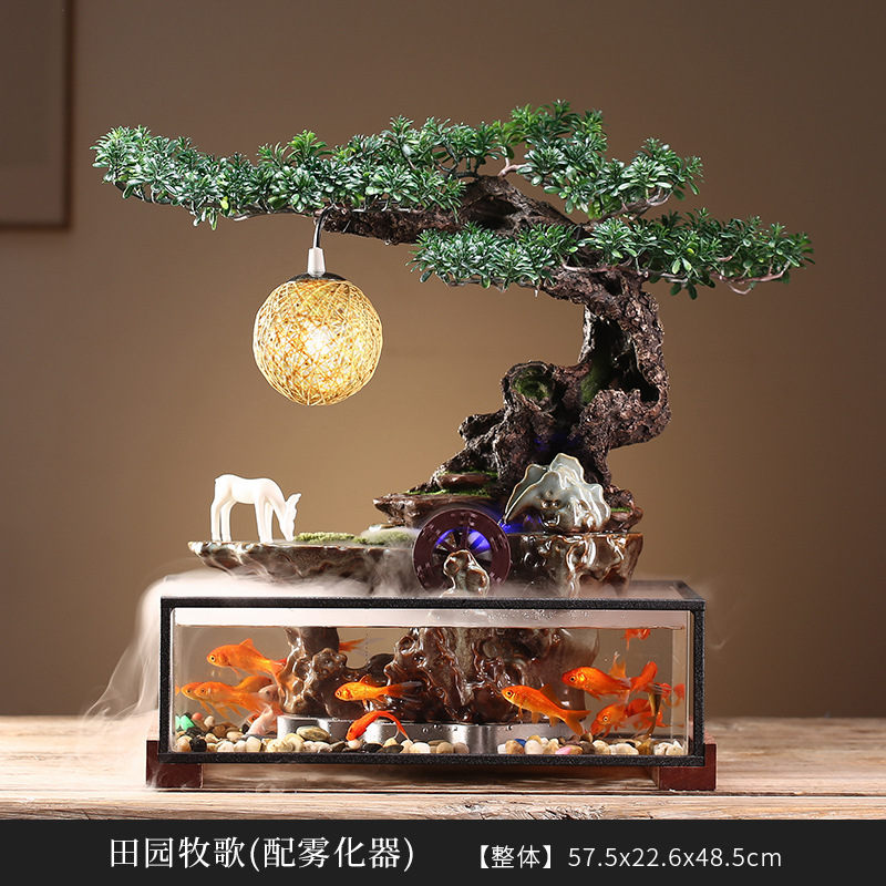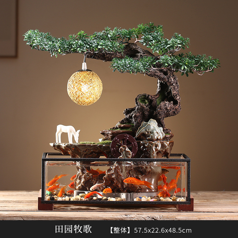 창조적 인 행운의 물 어항 풍경 장식 분수 물 중국어 데스크탑 사무실 집들이 오프닝 선물