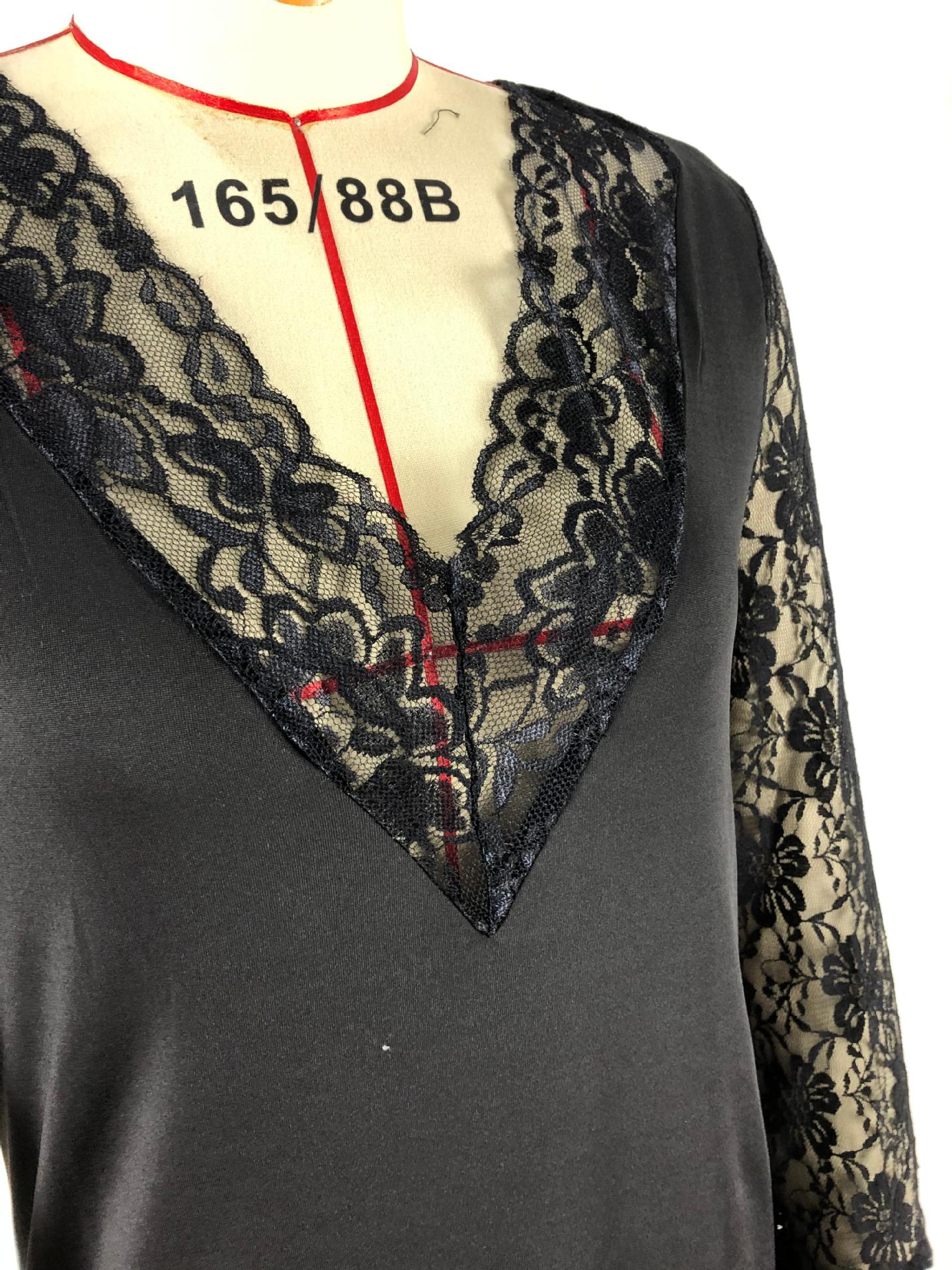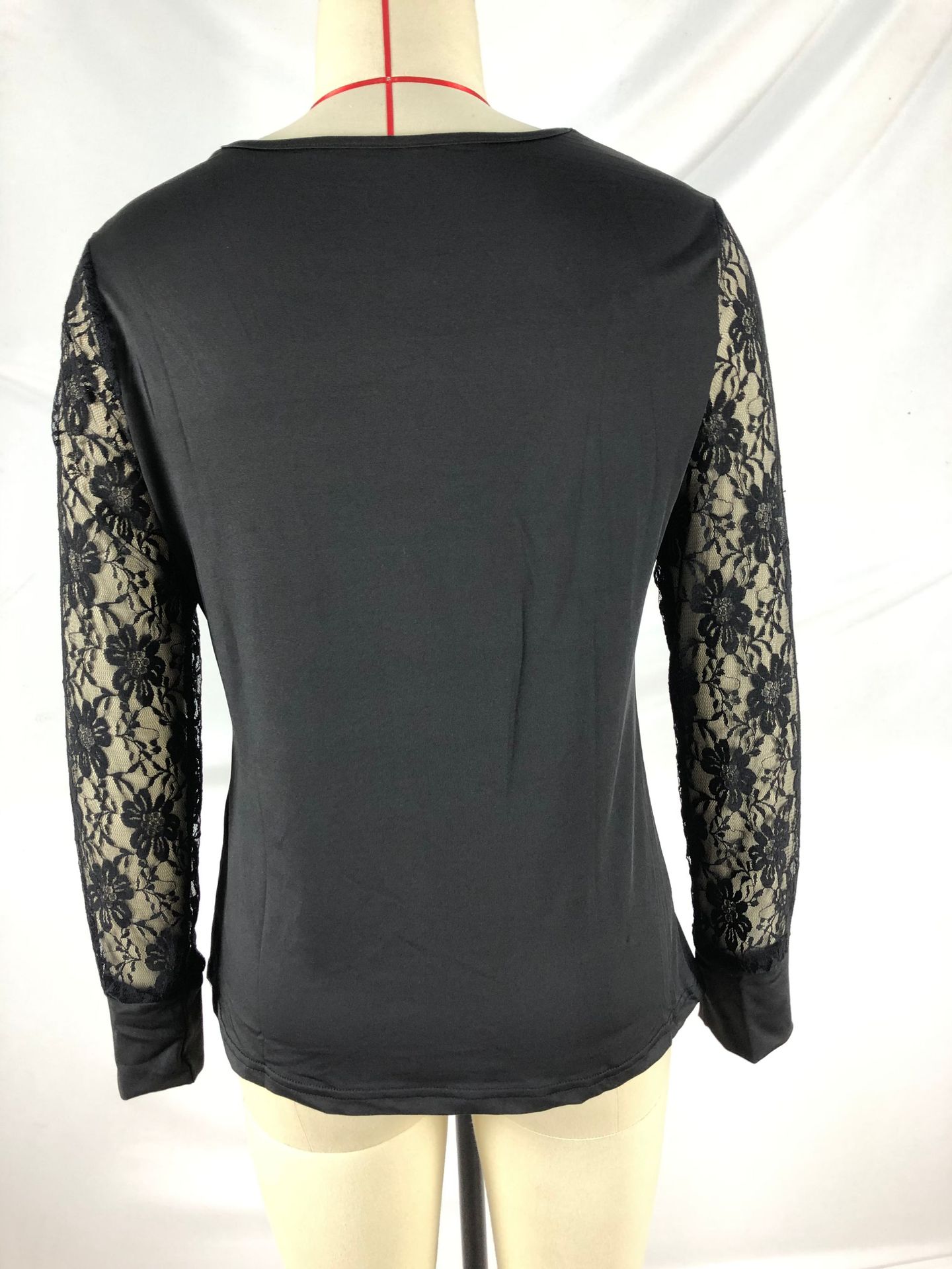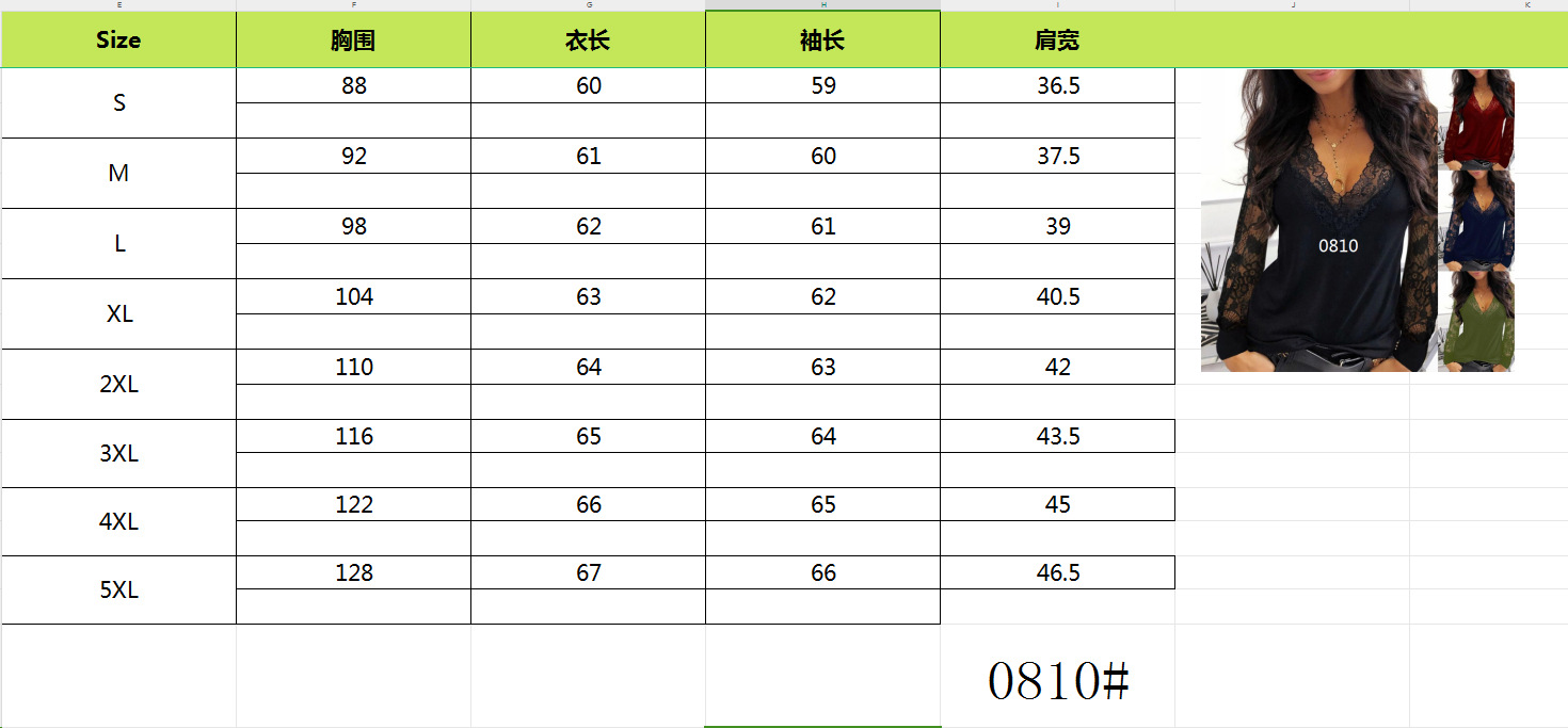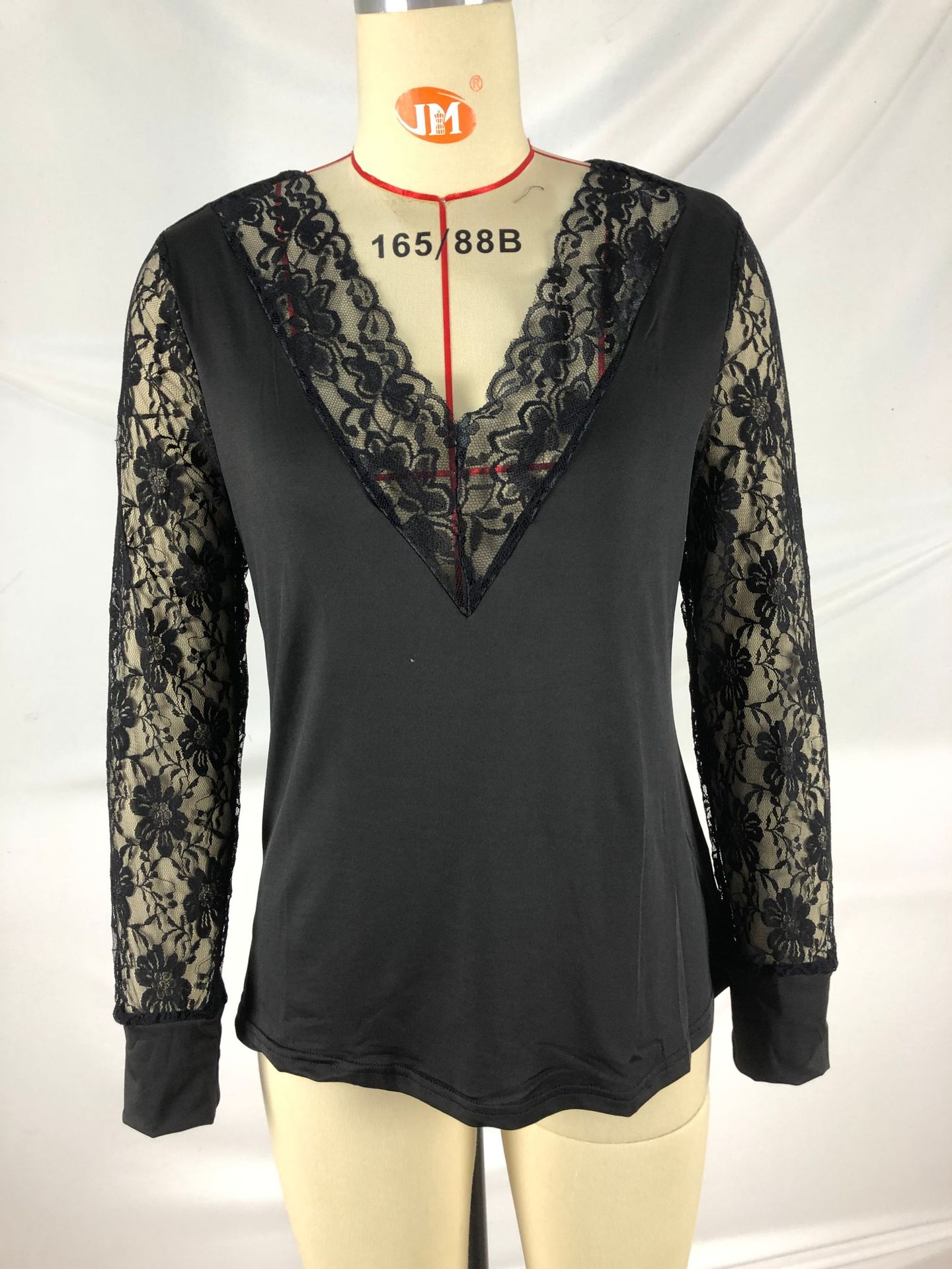 2024 가을 새로운 국경 대외 무역 유럽과 미국 의류 소스 레이스 스플 라이스 V 넥 시스루 긴팔 티셔츠스토어 가기