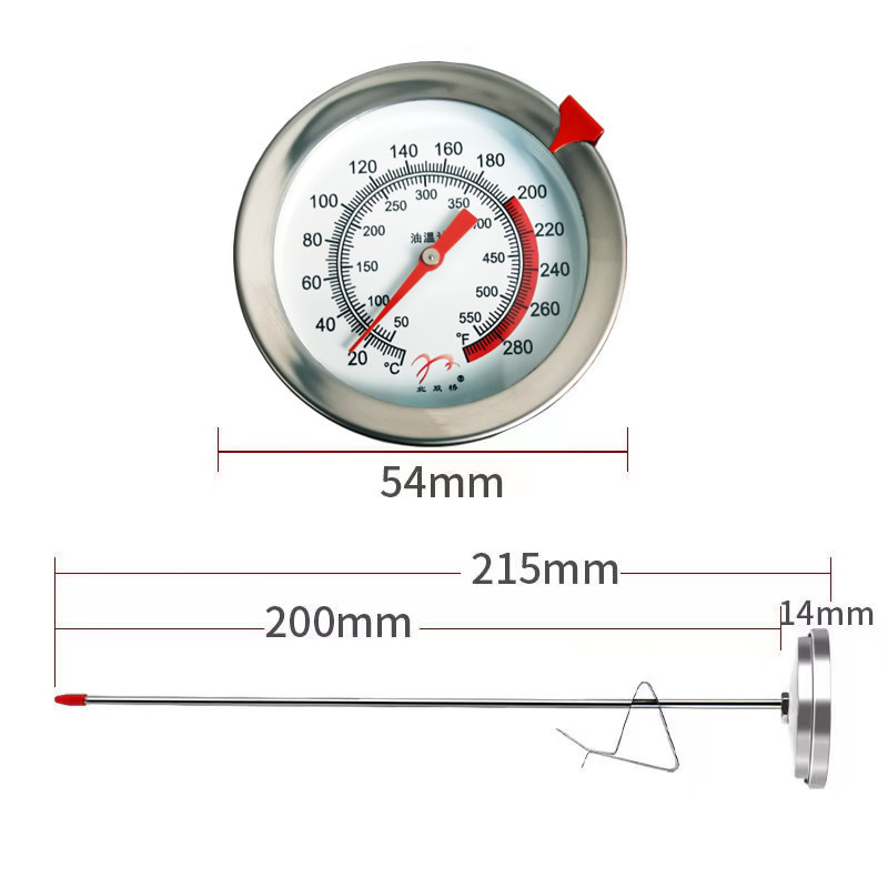 포인터 오일 온도계 고온 스테인레스 스틸 식품 등급 물 온도계 가정용 주방 튀김 냄비 굽기 온도 게이지