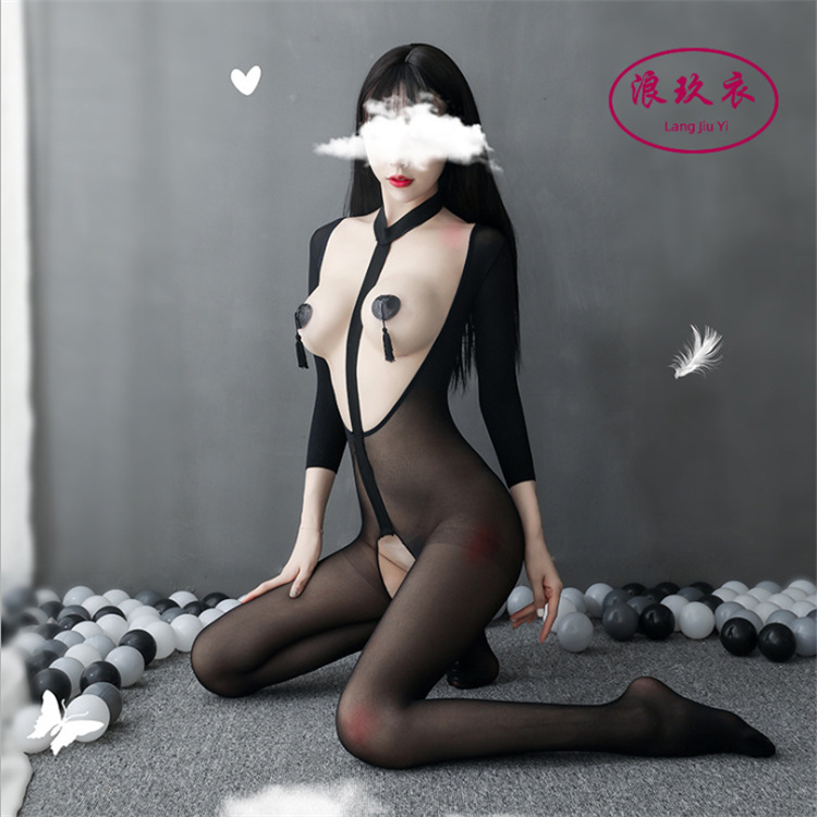 Langjiu 옷 새로운 섹시한 교수형 목 이슬 비키니 재미 가랑이가없는 샴 스타킹 (가슴 스티커 제외스토어 가기