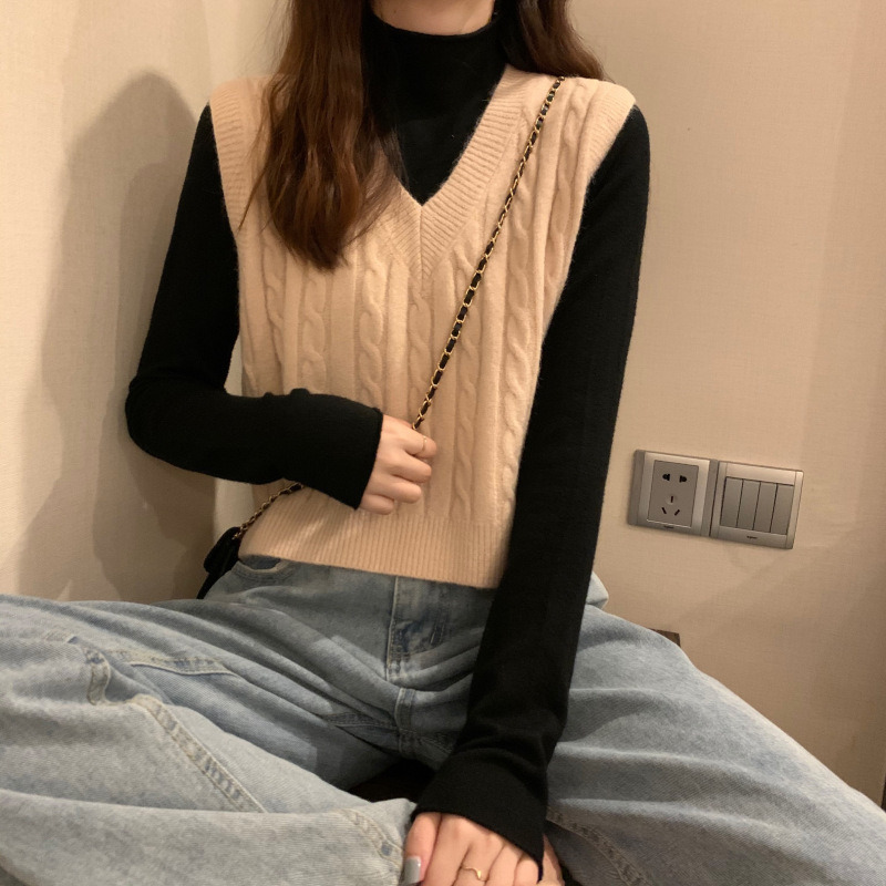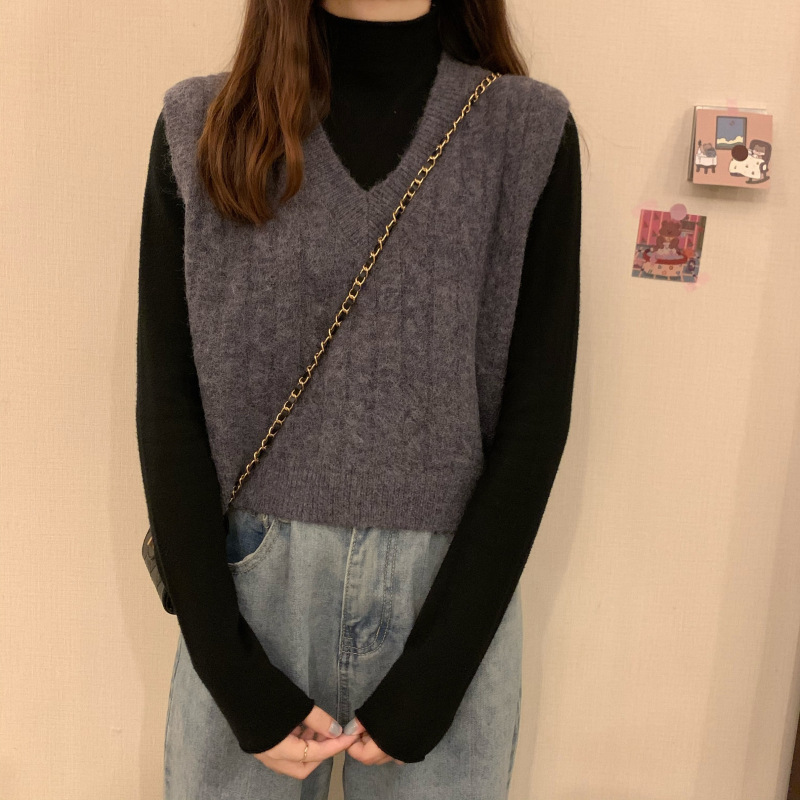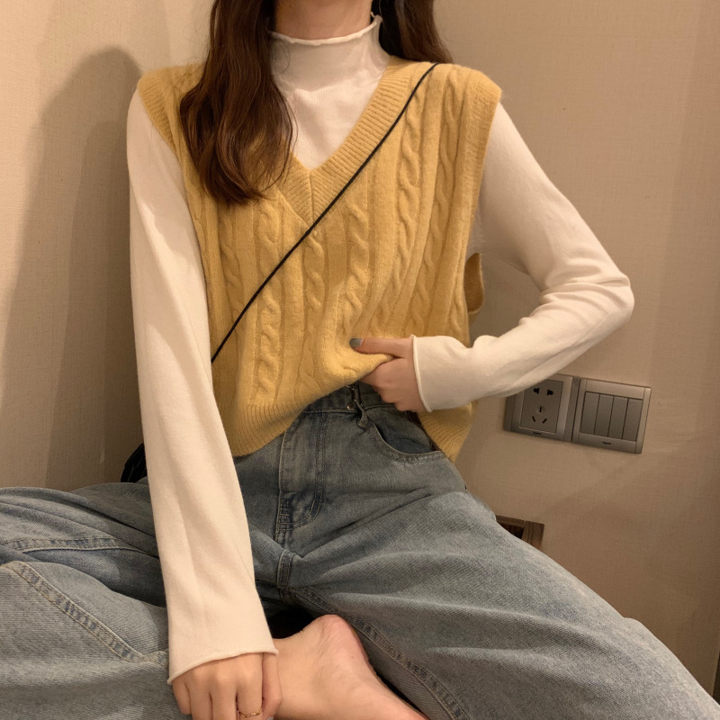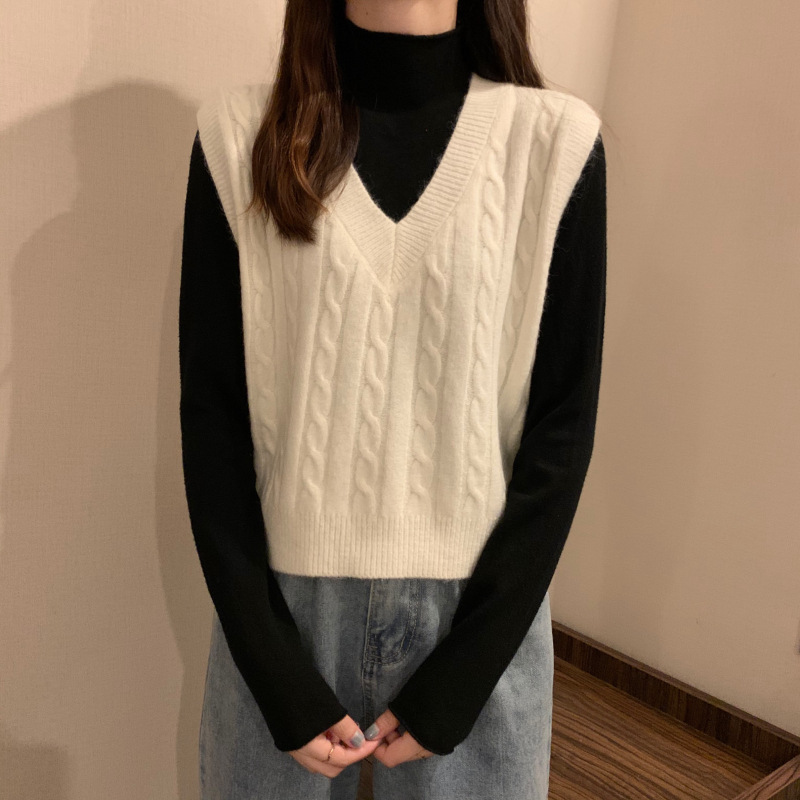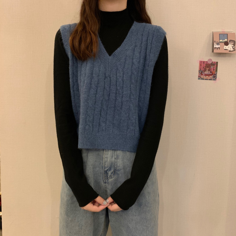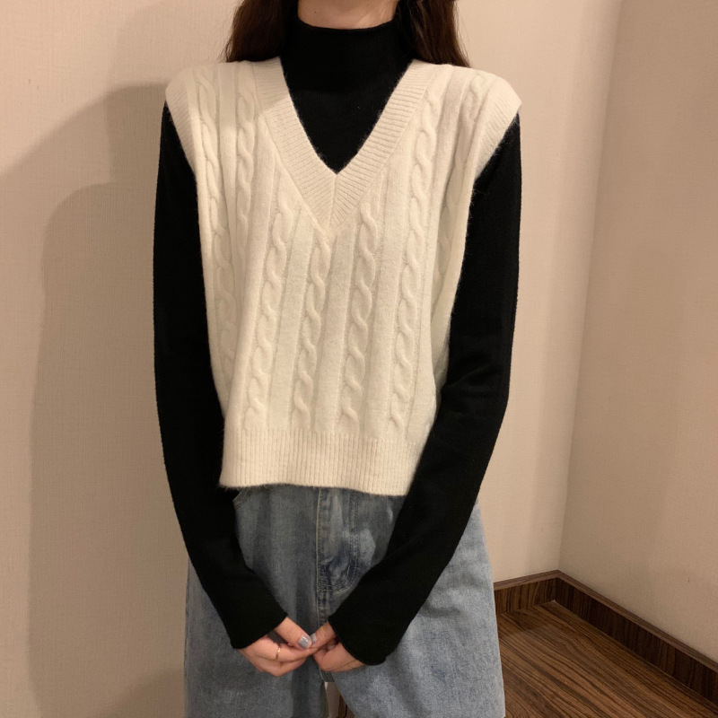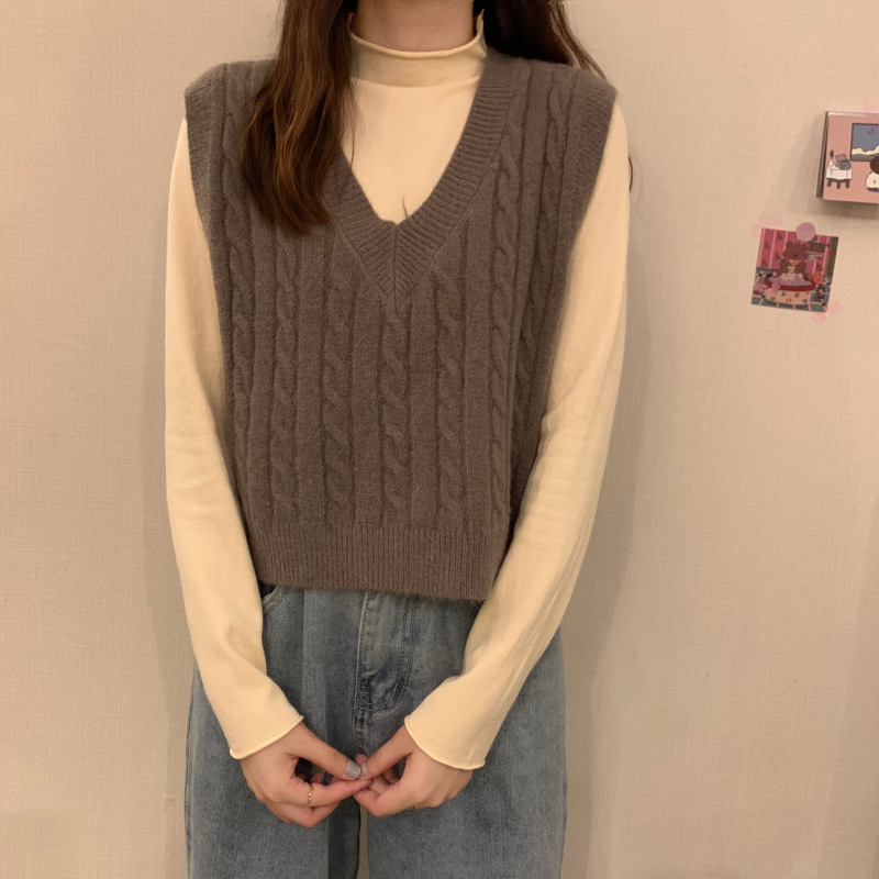 2024 가을 새로운 레트로 홍콩 스타일 v 넥 트위스트 니트 조끼 여성 느슨한 외부 스웨터 여성 민소매 조끼스토어 가기