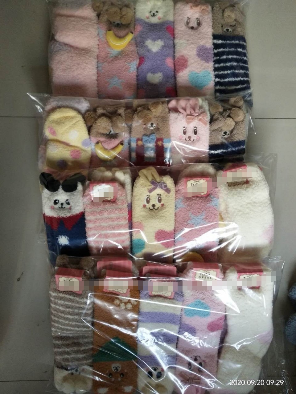 十双一包入袋。每袋里面是卡通款和提花款混合装。我们每次出货前都会给订货的客人拍大图。让你买的放心。