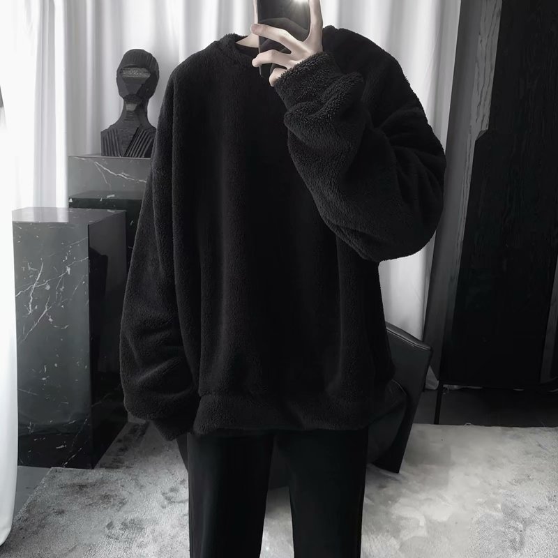 가을과 겨울 다크 램 양털 느슨한 크루넥 스웨터 남자의 세련된 학생 커플 기모 두꺼운 재킷 유행스토어 가기
