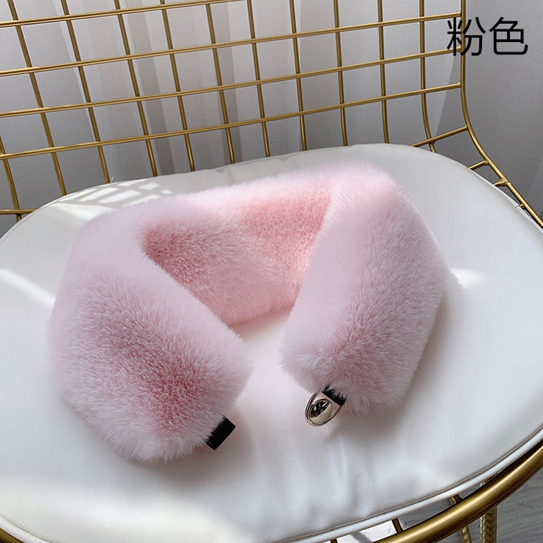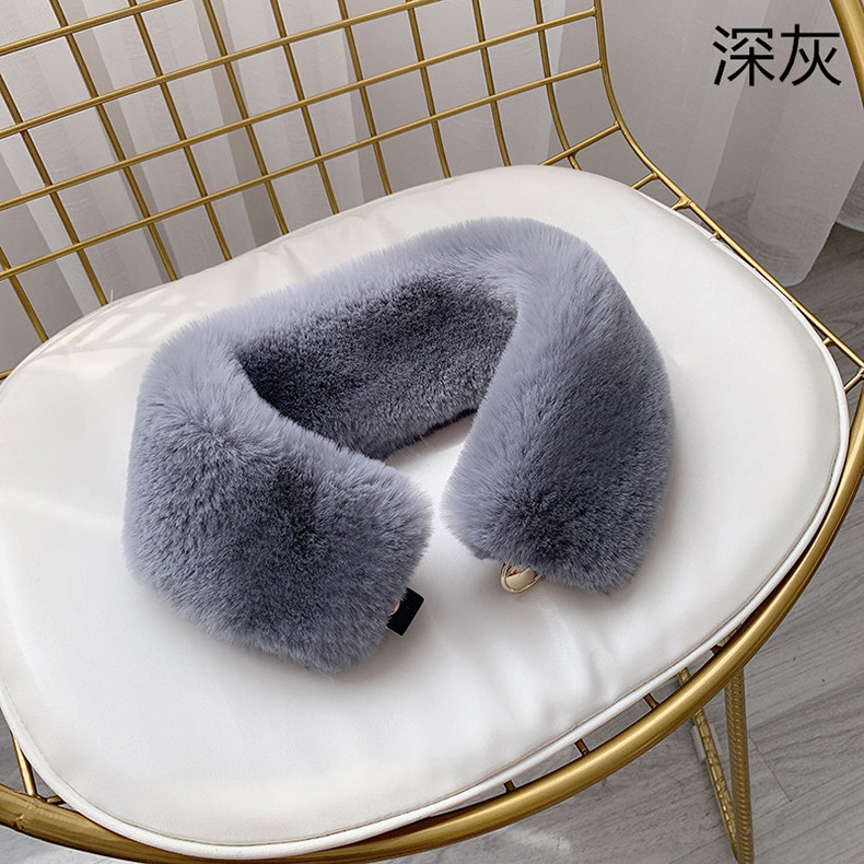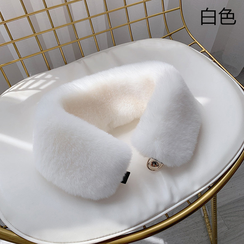 가을과 겨울 여성을위한 한국 스타일 모조 토끼 모피 스카프 울 칼라 다크 버클 스카프 단색 두꺼운 따뜻한 모조 모피 스카프