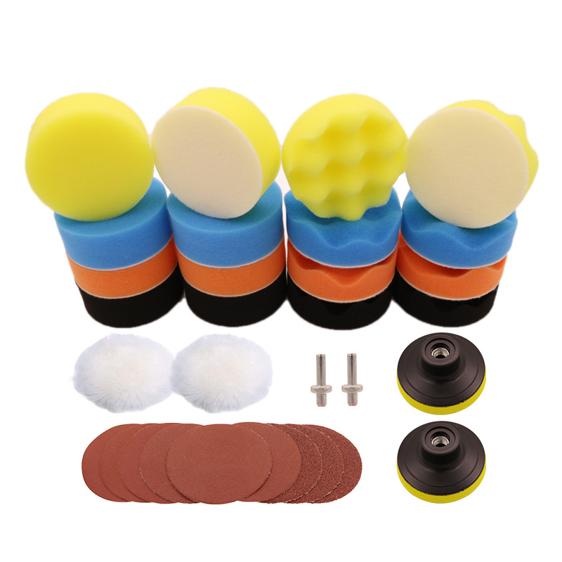 3 인치 22 피스 세트 자동차 연마 디스크 자체 접착 연마 패드 세트 스폰지 휠 왁싱 울 휠 연마 휠