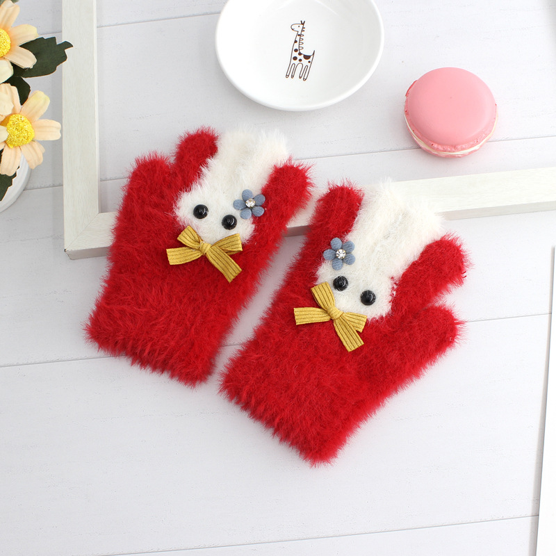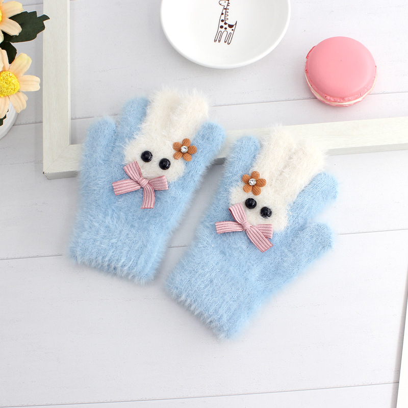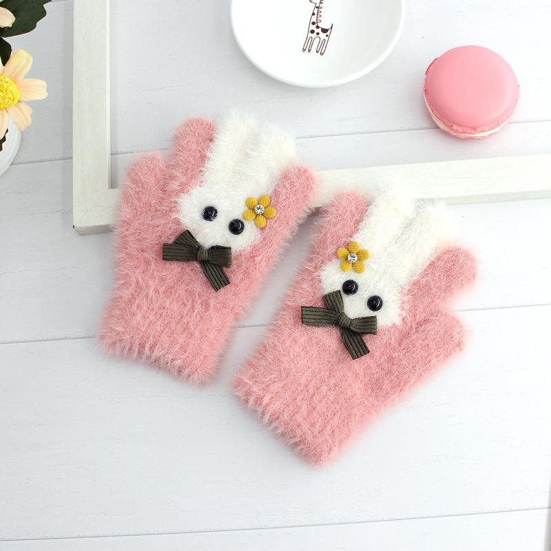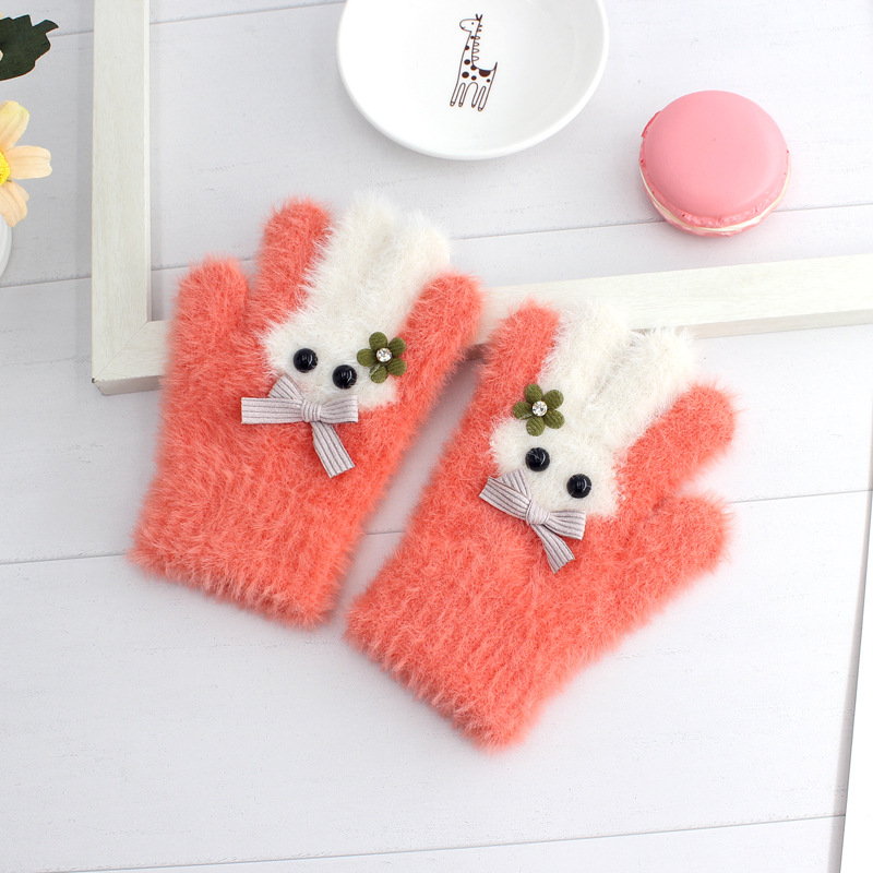 겨울 한국 패션 어린이 풀 핑거 밍크 벨벳 장갑 귀여운 만화 토끼 따뜻한 어린이 손가락 장갑 도매스토어 가기