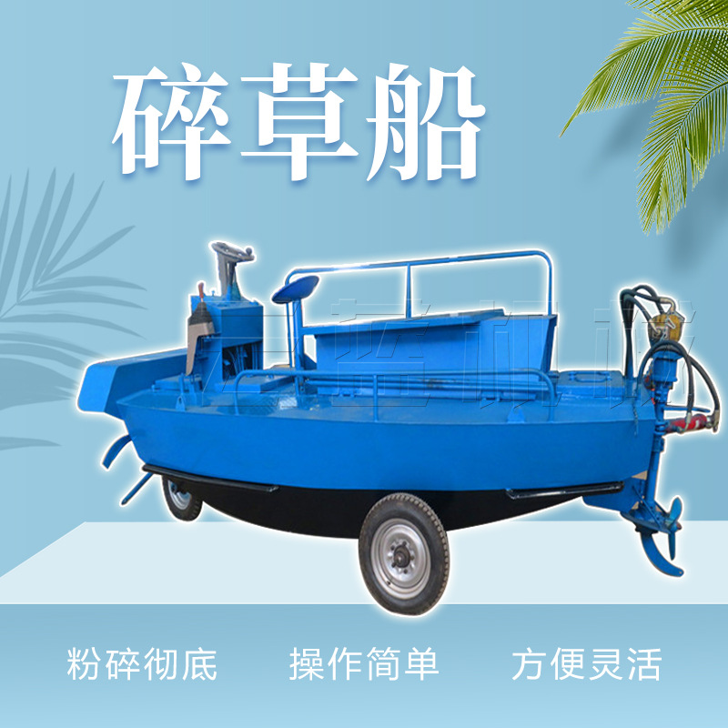 강 풍경 지역 호수 작은 물 잔디 분쇄 장비 물 히아신스 분쇄 보트 수생 식물 수확 분쇄 보트