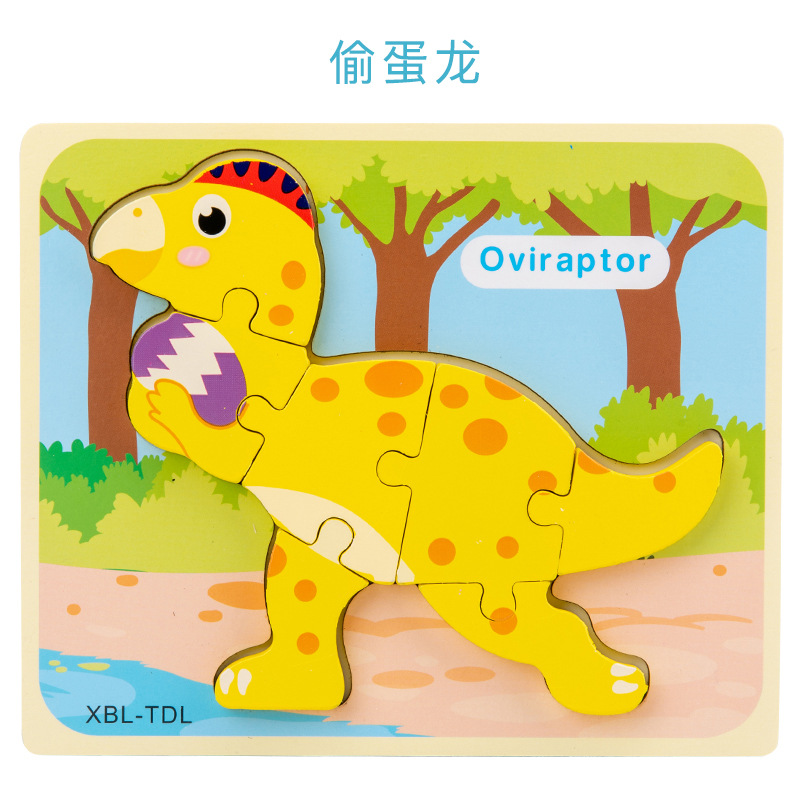 어린이 만화 공룡 3D 퍼즐 나무 장난감 조기 교육 빌딩 블록 지능 휴대용 퍼즐 도매스토어 가기