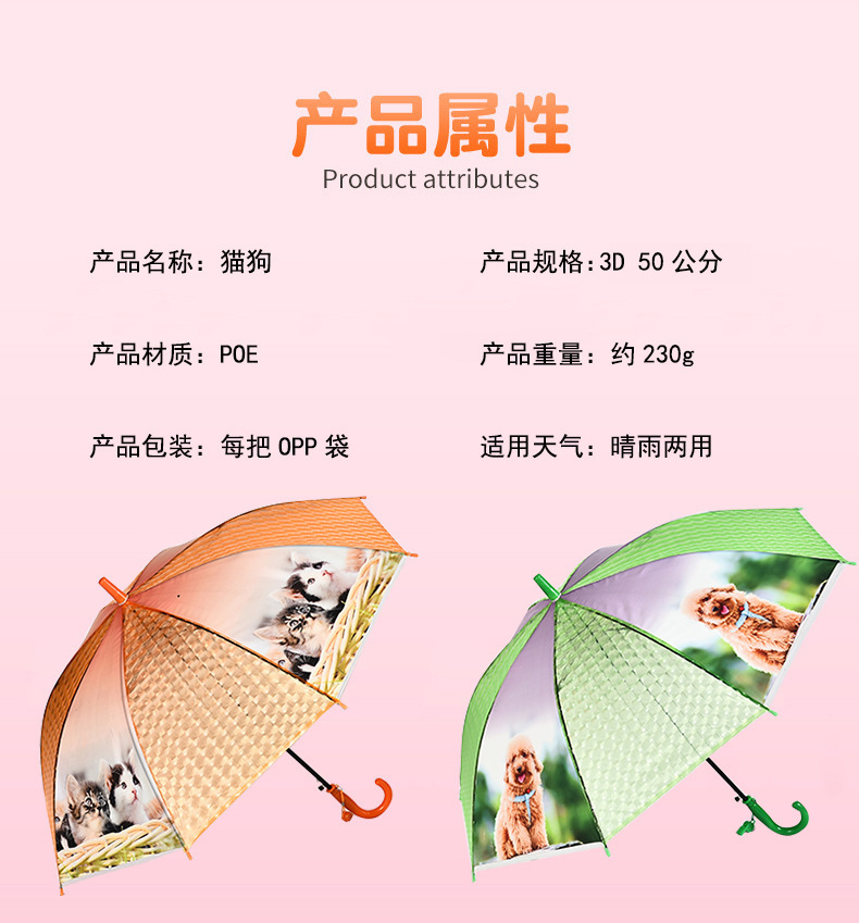 3D 만화 우산 어린이 직선 손잡이 우산 초등학생 비 또는 빛 방지 반동 8 뼈 방풍 도매 방수스토어 가기