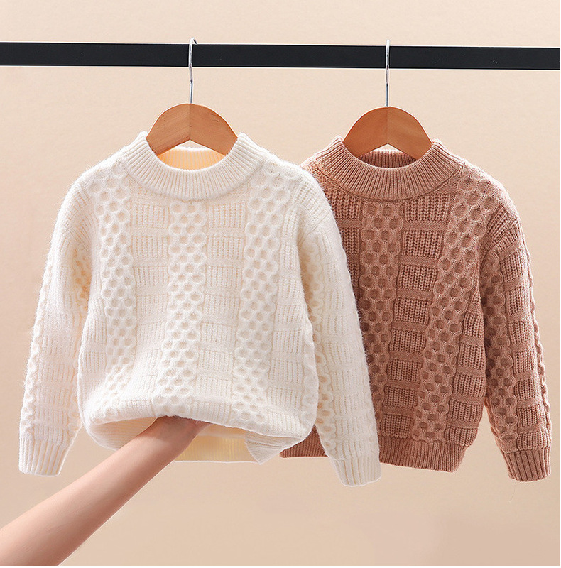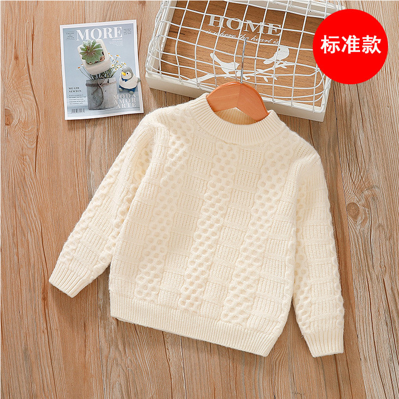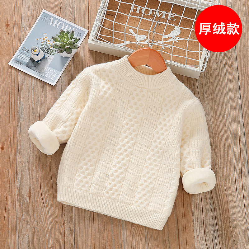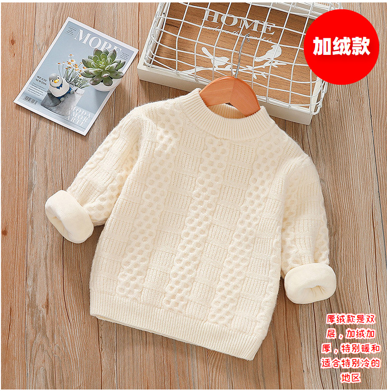 어린이 스웨터 2024 가을 겨울 신상 중대형 어린이용 플러스 벨벳 두꺼운 니트 베이스 셔츠 학생용 흰색 스웨터 도매스토어 가기