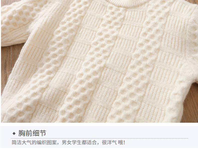 어린이 스웨터 2024 가을 겨울 신상 중대형 어린이용 플러스 벨벳 두꺼운 니트 베이스 셔츠 학생용 흰색 스웨터 도매