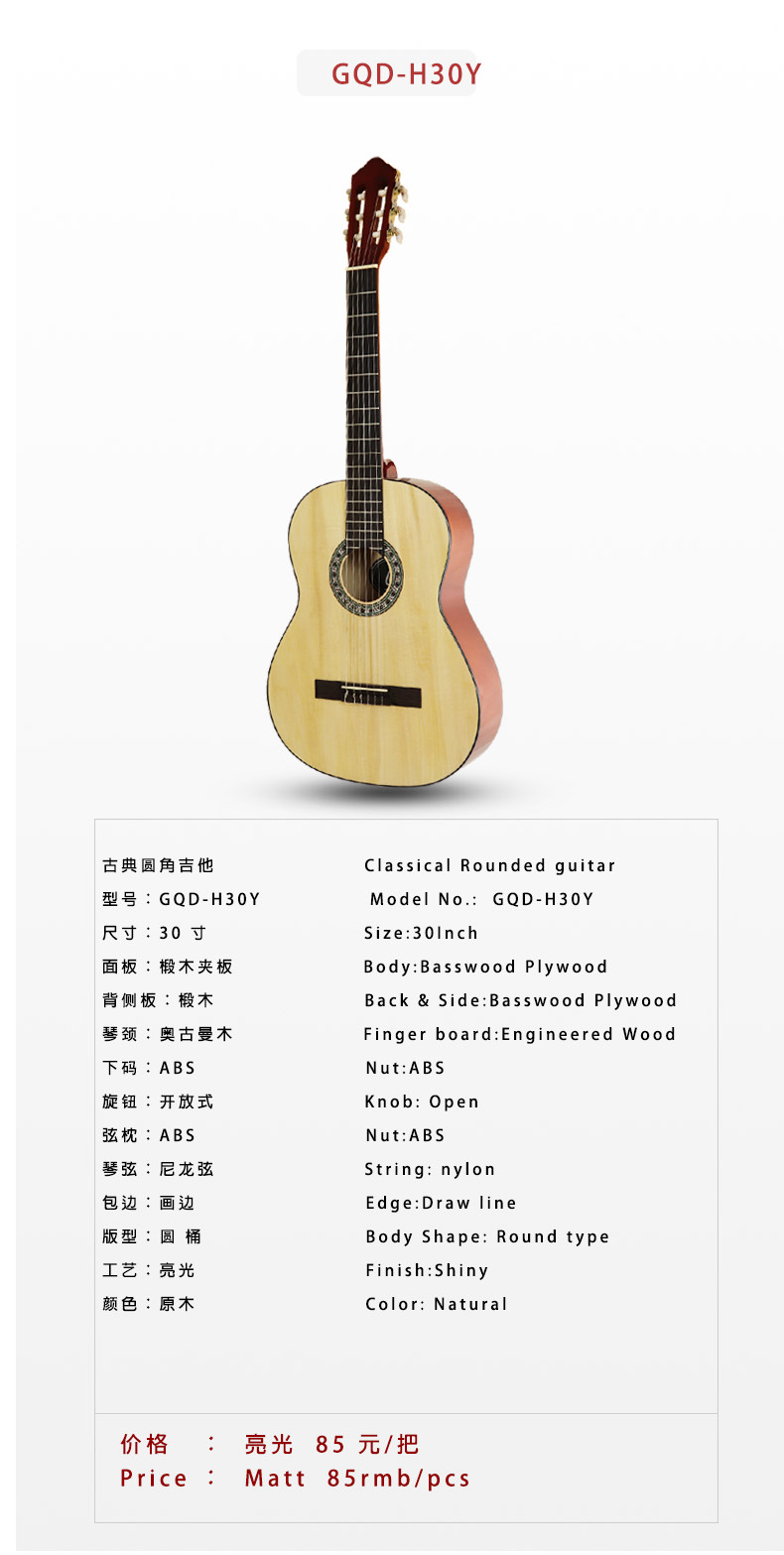 클래식 기타 리얼 팩토리 다이렉트 30 인치 클래식 어쿠스틱 기타 올베이스 우드 브라이트 기타