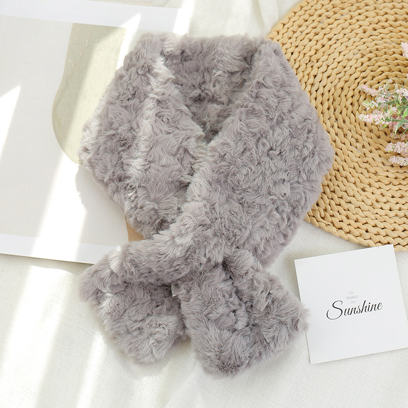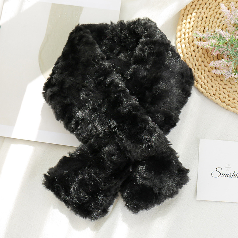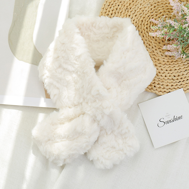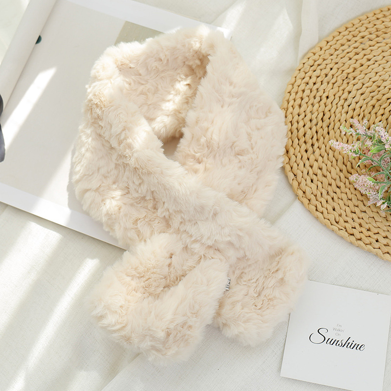 고급 한국 동대문 겨울 새로운 모조 토끼 모피 크로스 스카프 플러시 목 두꺼운 따뜻한 여성