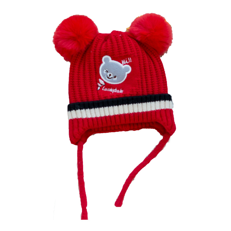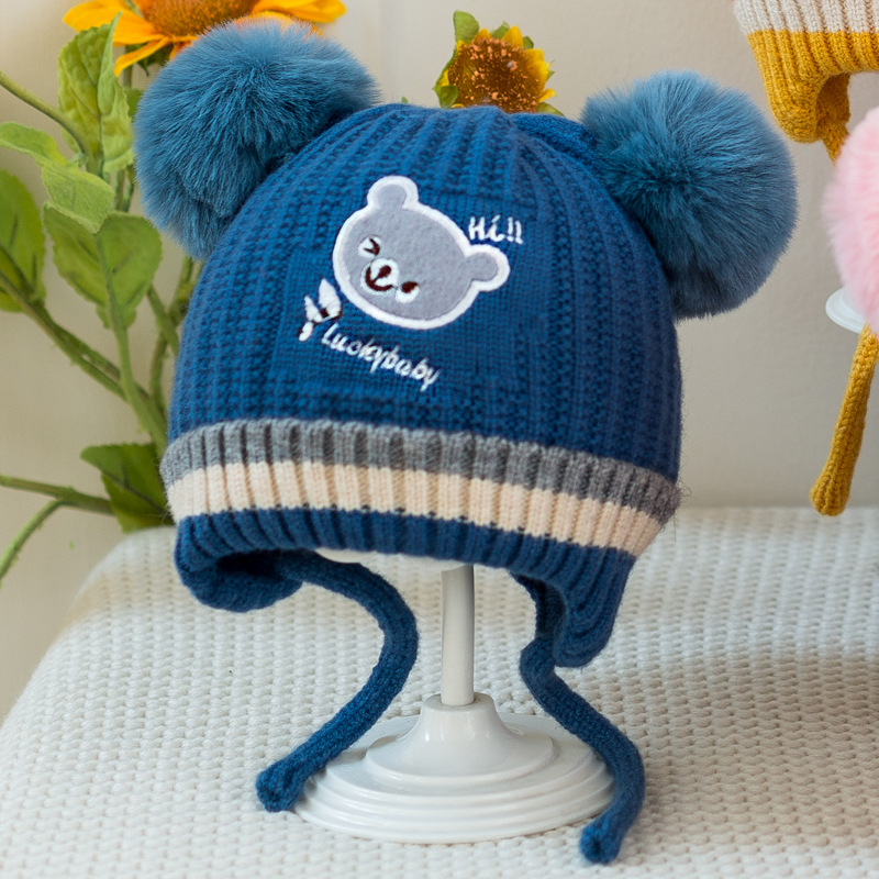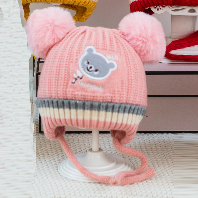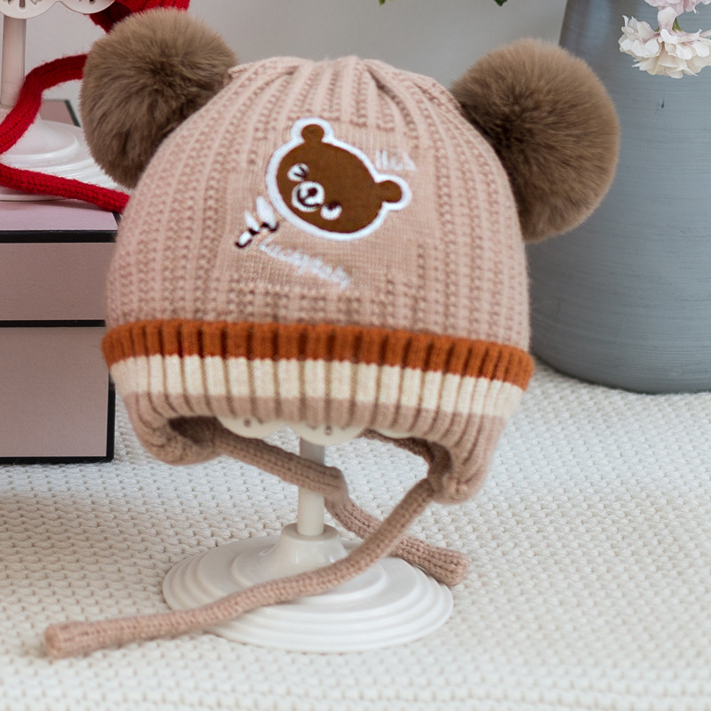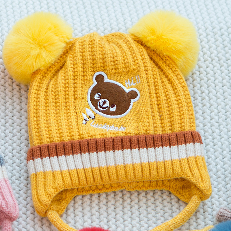 소년과 소녀 가을과 겨울 모자 한국 자수 곰 니트 모자 귀여운 아기 귀 보호 기모 따뜻한 양모 모자