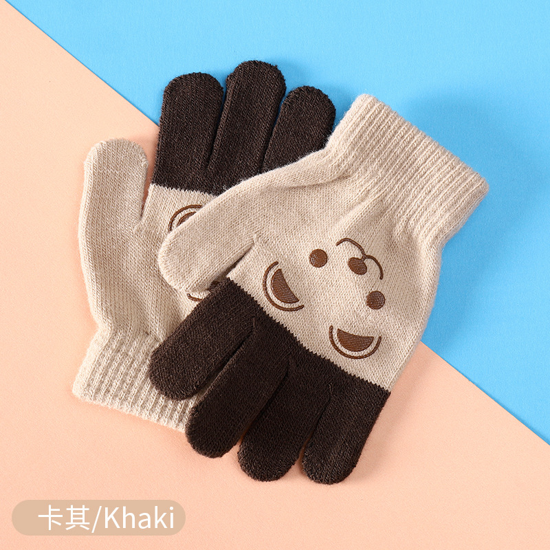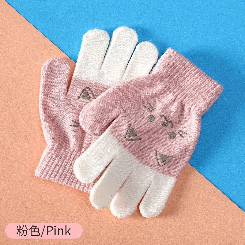공장 도매 가을과 겨울 따뜻한 손가락 귀여운 만화 소년과 소녀 손가락 장갑 니트 어린이 장갑스토어 가기