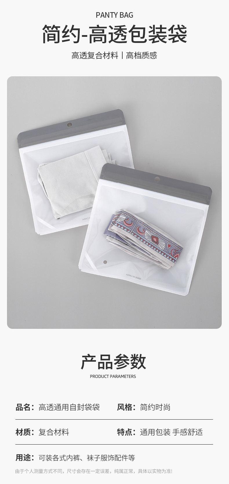 남성 및 여성 속옷 독립 포장 가방 투명 기능 의류 속옷 지퍼 가방 두꺼운 양말 지퍼 가방