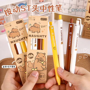 新款卡皮巴拉ST头方方笔卡通按动中性笔高颜值可爱黑0.5mm刷题笔