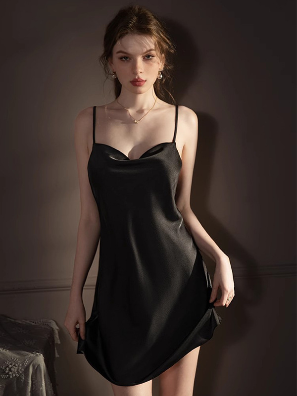 • 단조 실크 잠옷 - 판타지 블랙 프렌치 스타일
