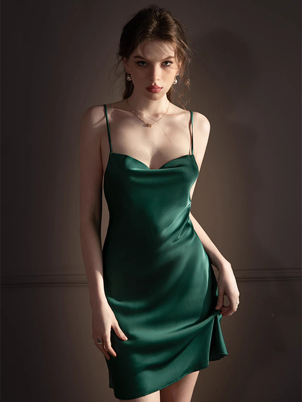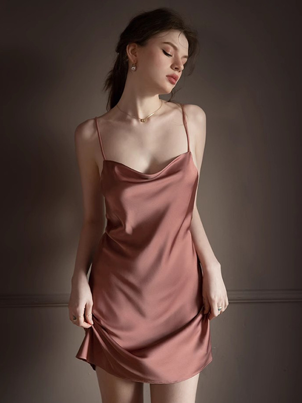 • 단조 실크 잠옷 - 미젠 컬러 프렌치 스타일