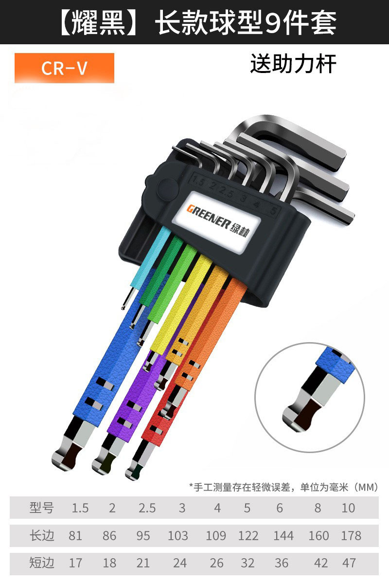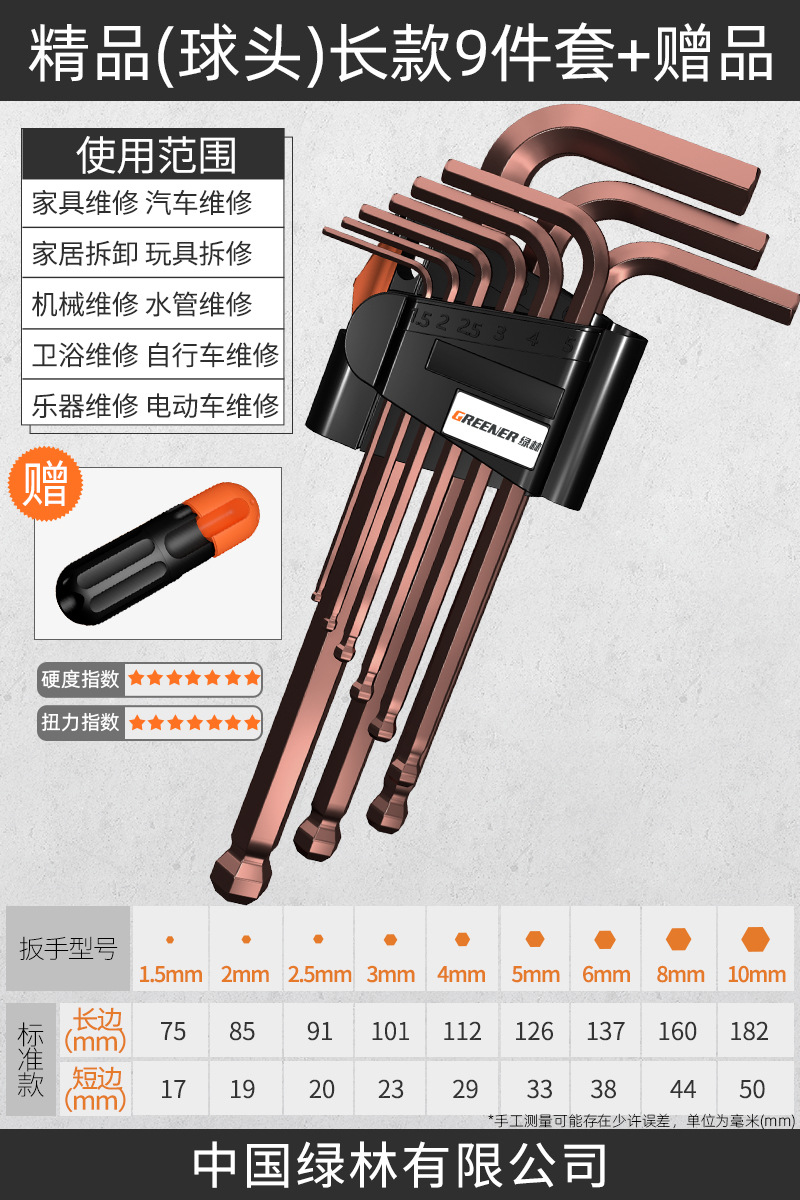 녹색 숲 색상 알렌 렌치 세트 패턴 내부 육각형 육각형 각도 드라이버 도구 육각형 각도 볼 헤드 조합스토어 가기
