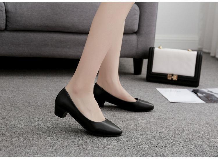 봄과 가을 작업 신발 블랙 전문 여성 싱글 신발 여성용 낮은 굽 가죽 신발 여성용 중간 굽 정장 원피스 낮은 굽 스튜어디스 여성스토어 가기