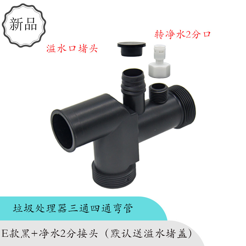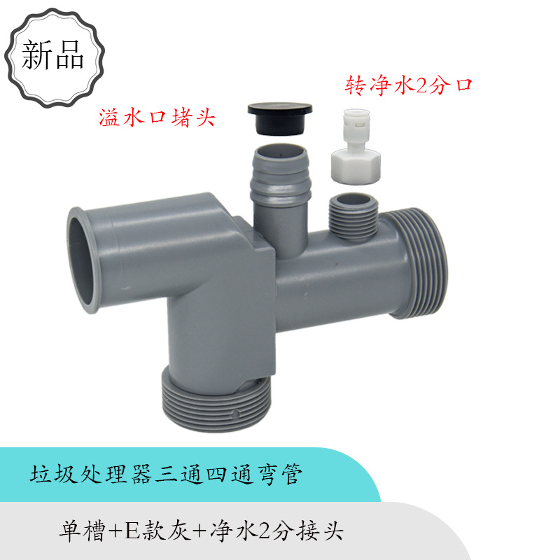 产品名称:垃圾处理器防返水四通弯管(带净水接口)