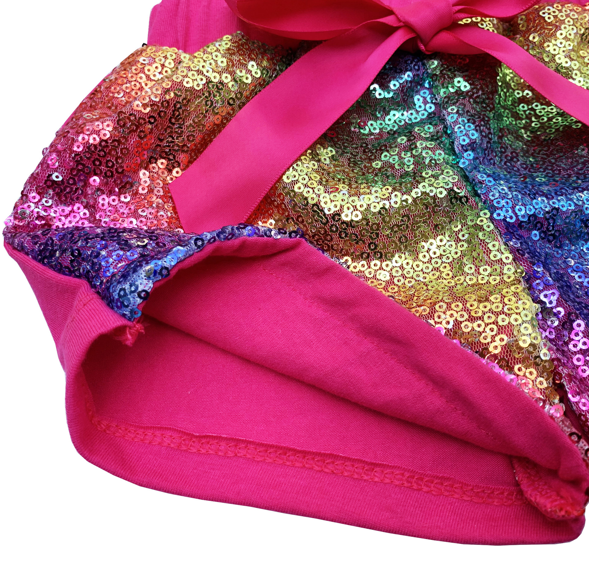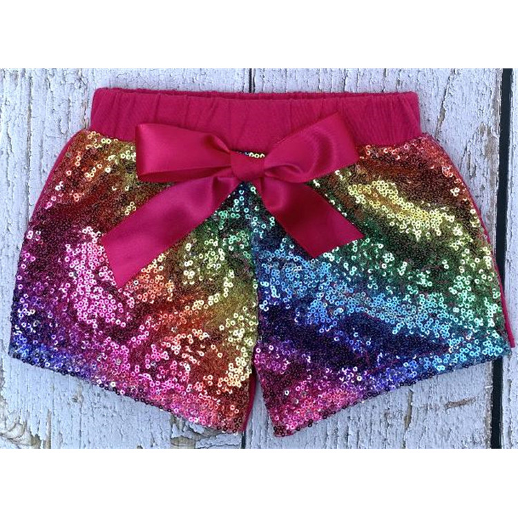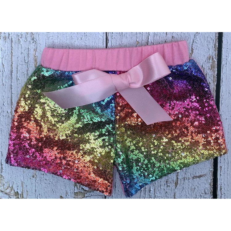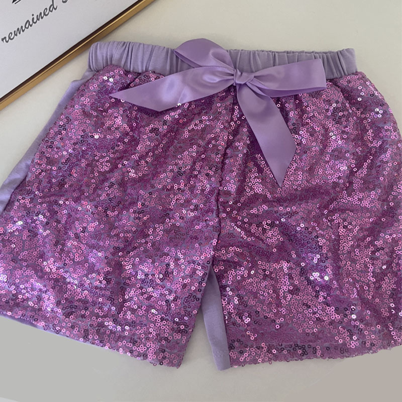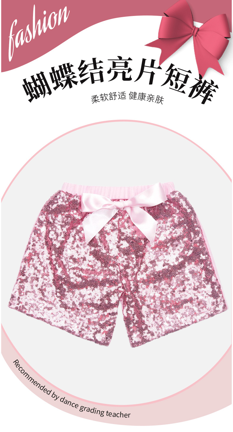 여아 보우 스팽글 반바지 여름 어린이 여아 양면 스팽글 반바지 편안한 비 마모성 유럽과 미국 유행