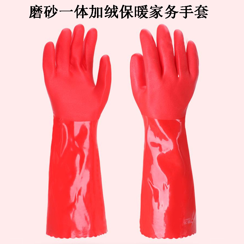 따뜻한 기모 두꺼운 젖빛 원피스 PVC 가정용 장갑 미끄럼 방지 방수 겨울 유니버설 노동 보호 장갑스토어 가기