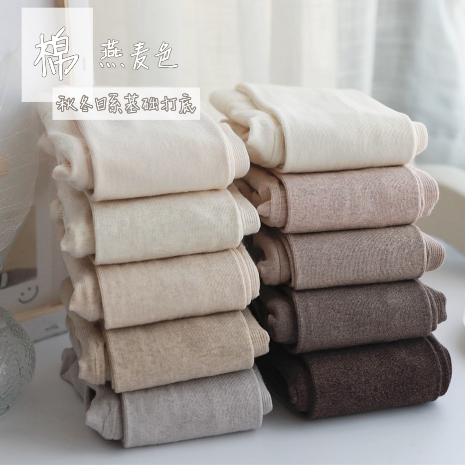 가을과 겨울 코튼 오트밀 색상 세로 기모 두꺼운 팬티 스타킹 일본식 크림 화이트 따뜻한 슬리밍 레깅스 여성용스토어 가기