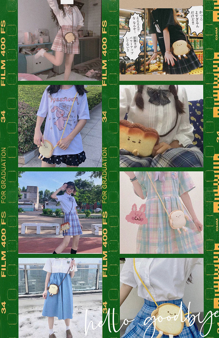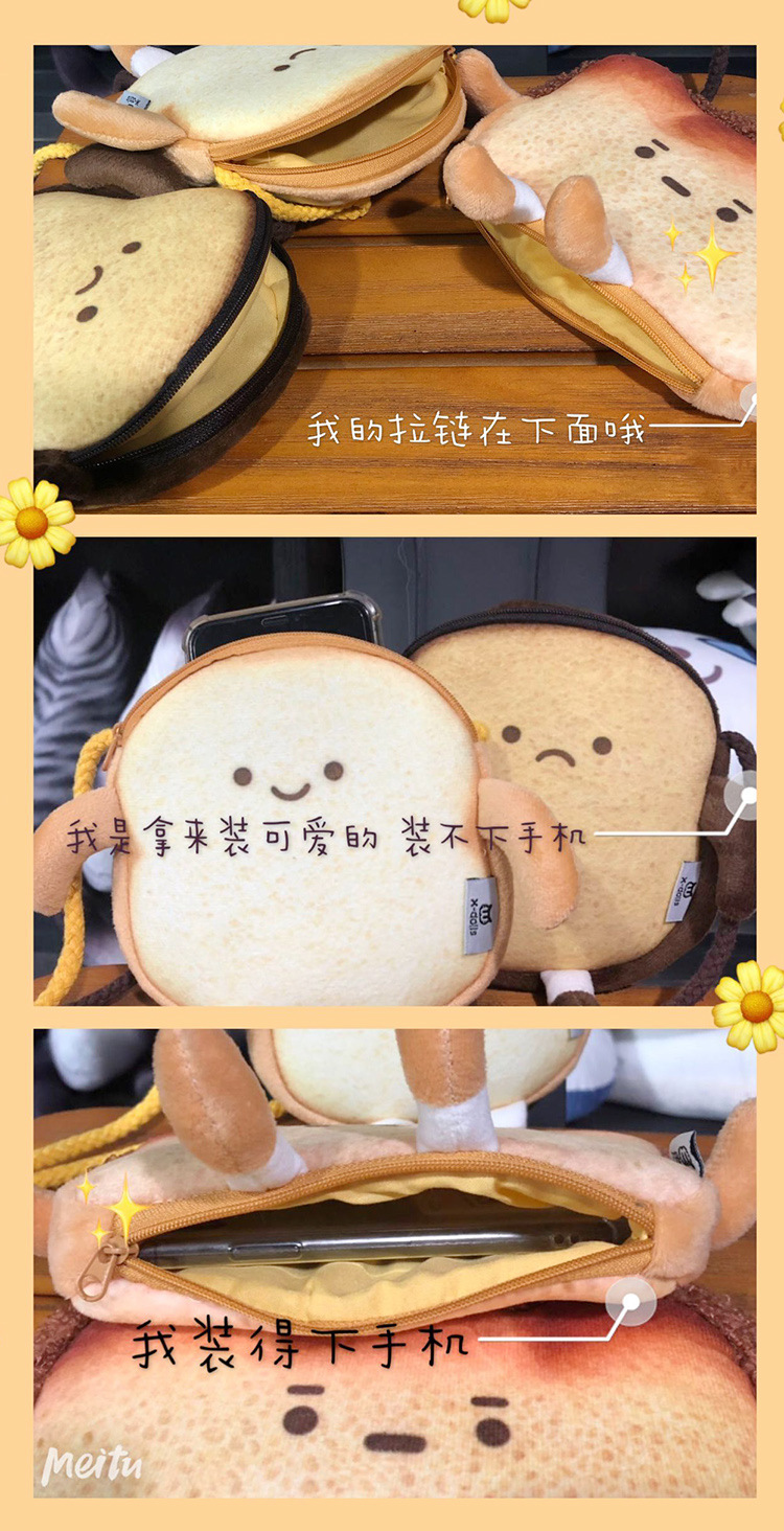 토스트 빵 동전 지갑 동전 가방 귀여운 만화 멋진 창조적 인 학생 여아 하트 크로스 바디 캐주얼 작은 가방스토어 가기