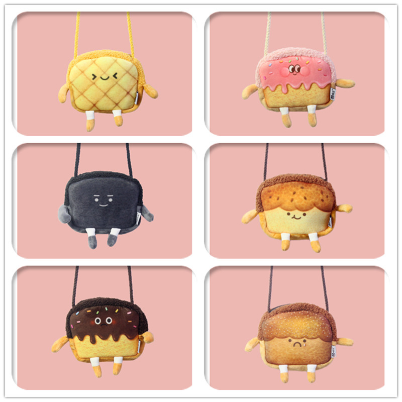 토스트 빵 동전 지갑 동전 가방 귀여운 만화 멋진 창조적 인 학생 여아 하트 크로스 바디 캐주얼 작은 가방