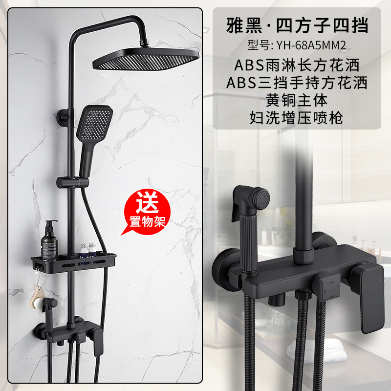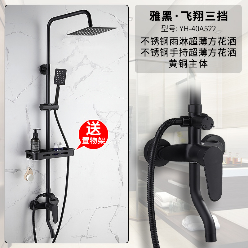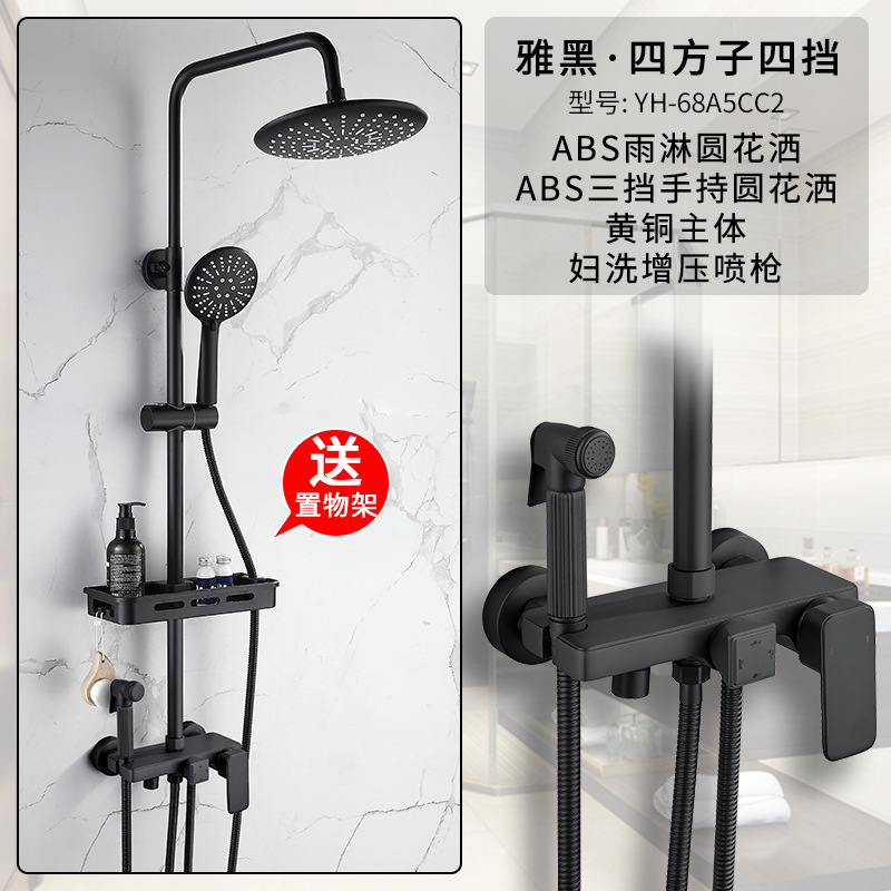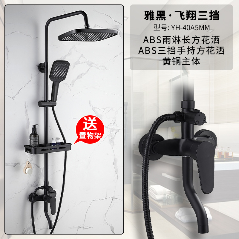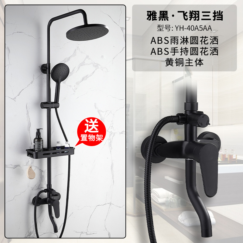 블랙 샤워 헤드 세트 가정용 구리 유럽식 욕실 벽걸이 형 샤워 수도꼭지 샤워 장치 레인 샤워 장치 세트