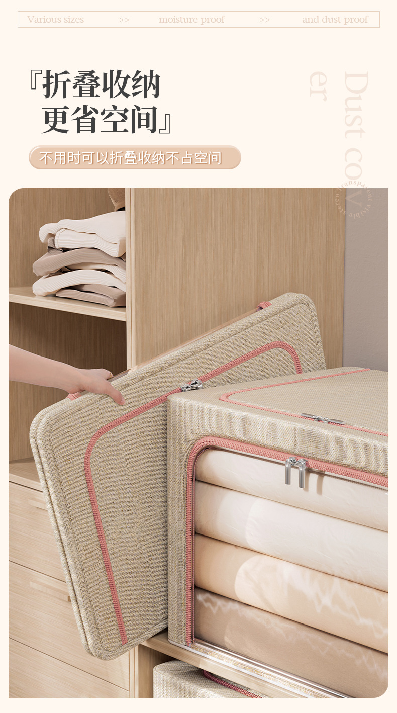 옷 수납함 두꺼운 면과 린넨 소재 의류 이불 정리함 가정용 패브릭 접이식 옷장 수납함