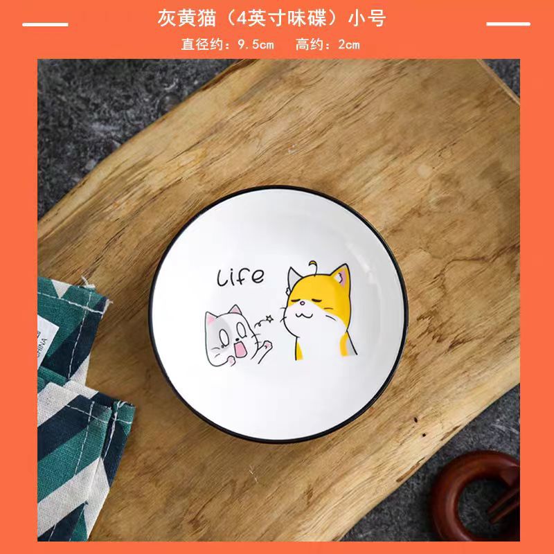 • 귀여운 고양이 조미료 접시 노란 고양이
