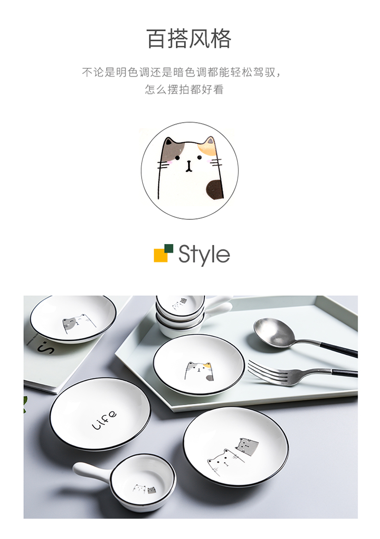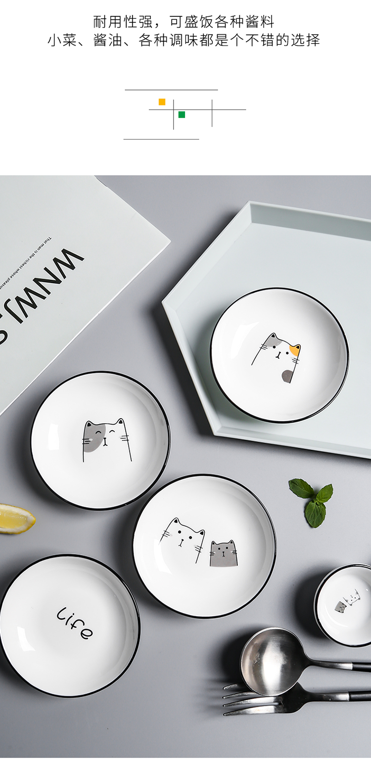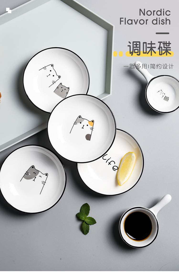 • 귀여운 고양이 조미료 접시-손잡이 접시