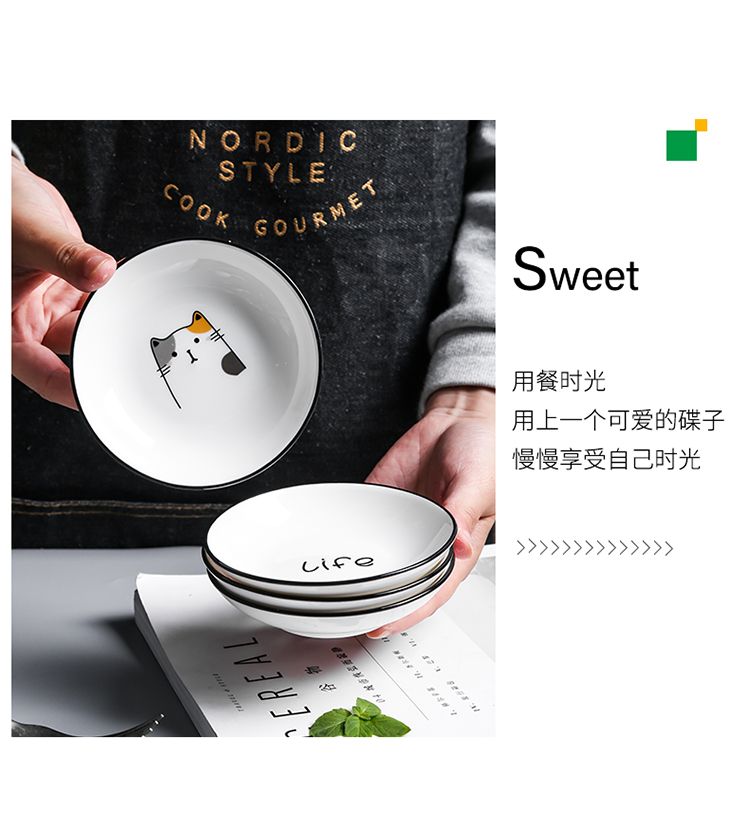 세라믹 스낵 딥 디프 접시 가정용 조미료 접시 북유럽 스타일 원형 접시 접시 손잡이 식초 간장 접시스토어 가기